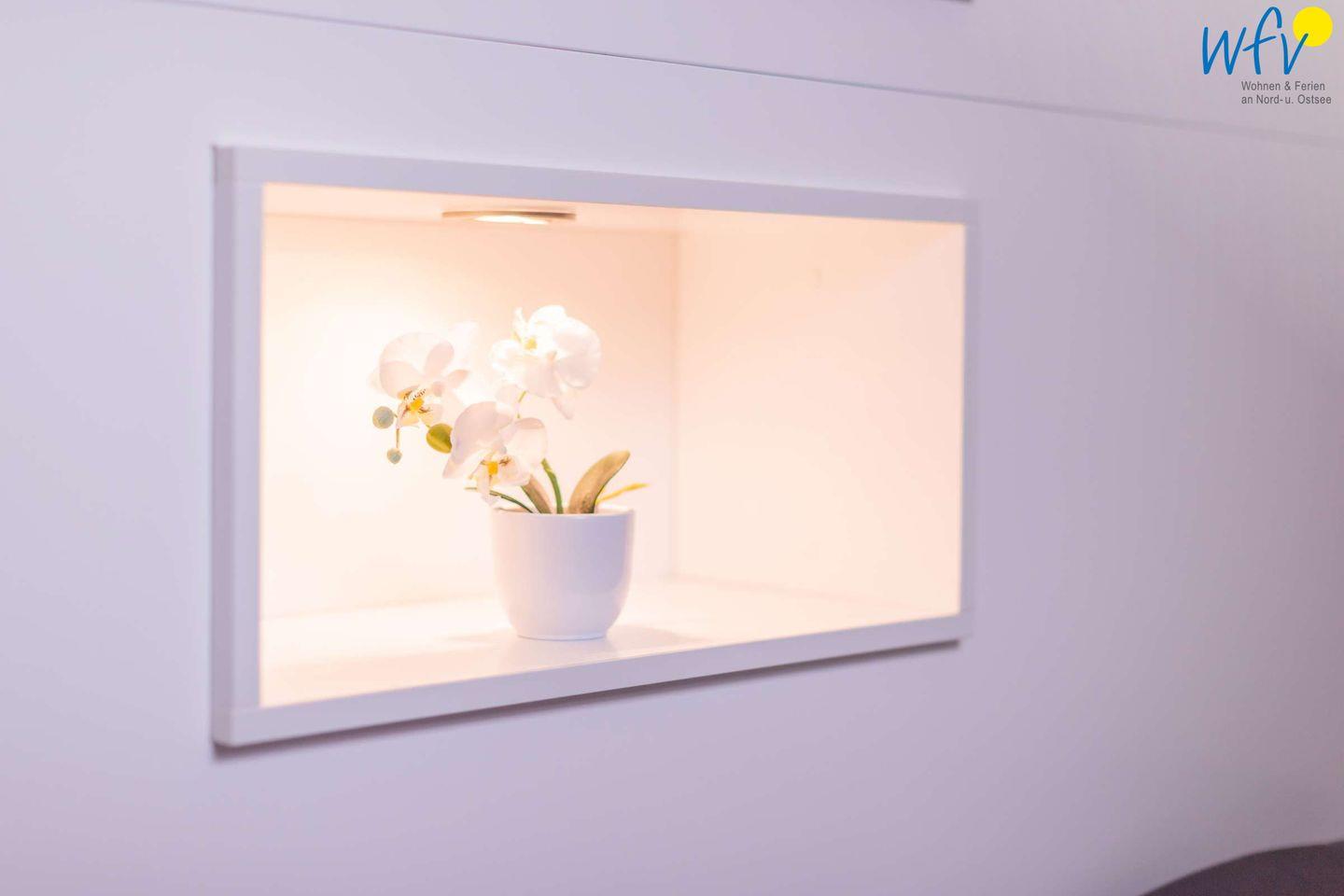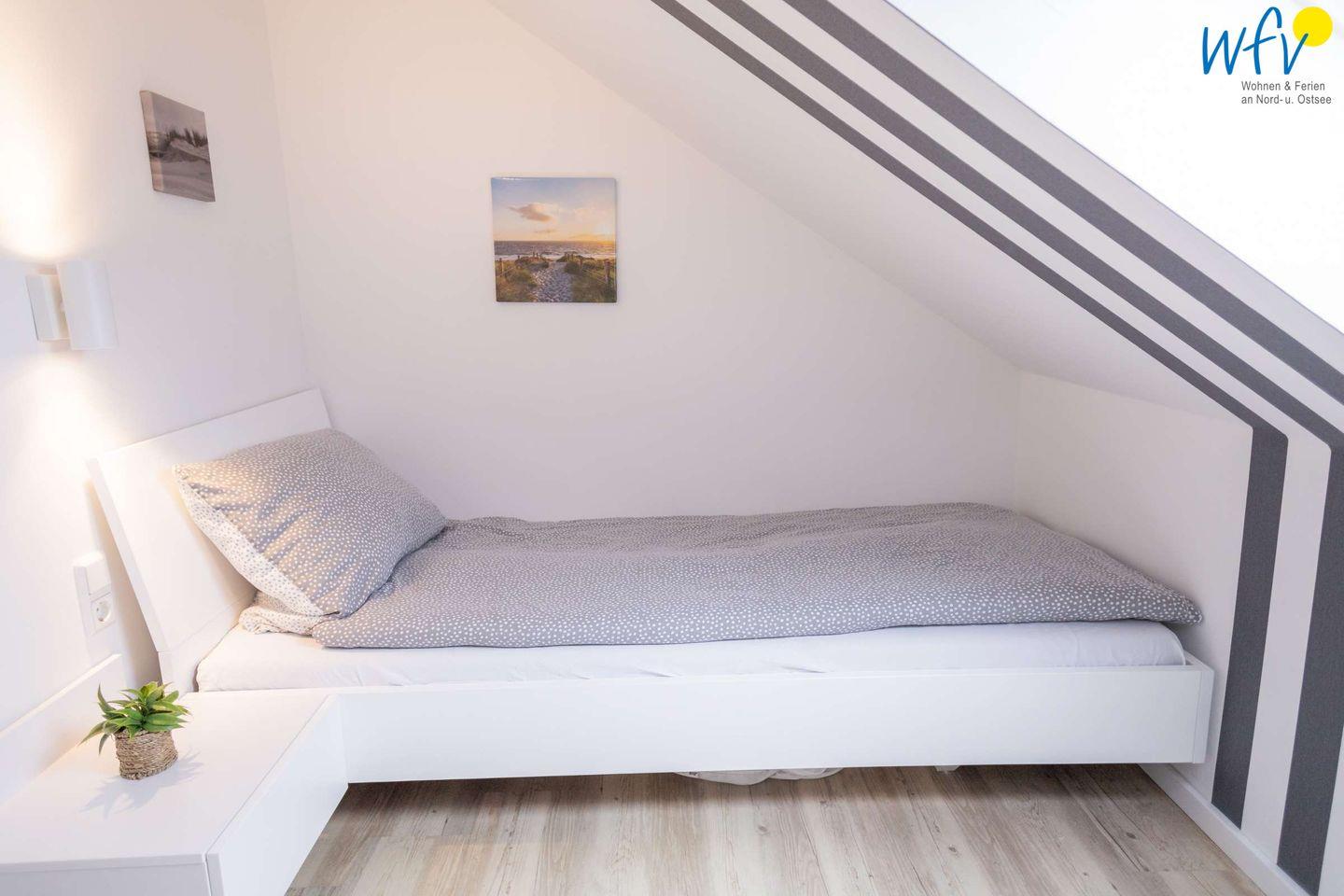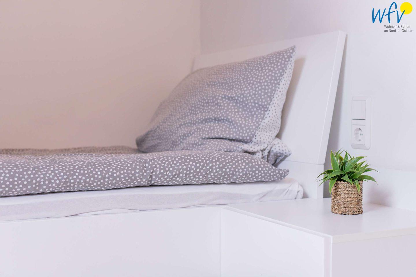 Urlaubszeit ist Relaxzeit! Eine gemütliche Couchlandschaft und ein modernes TV mit Netflix-Entertainment bieten Ihnen die perfekten Voraussetzungen für erholsame Stunden. Das separate Schlafzimmer der Wangerooger Ferienwohnung ist mit zwei Einzelbetten ausgestattet. Zwei weitere Schlafmöglichkeiten bestehen durch das Doppelbett im Wohnraum (Schlafbereich teilweise abgetrennt durch einen Raumteiler).