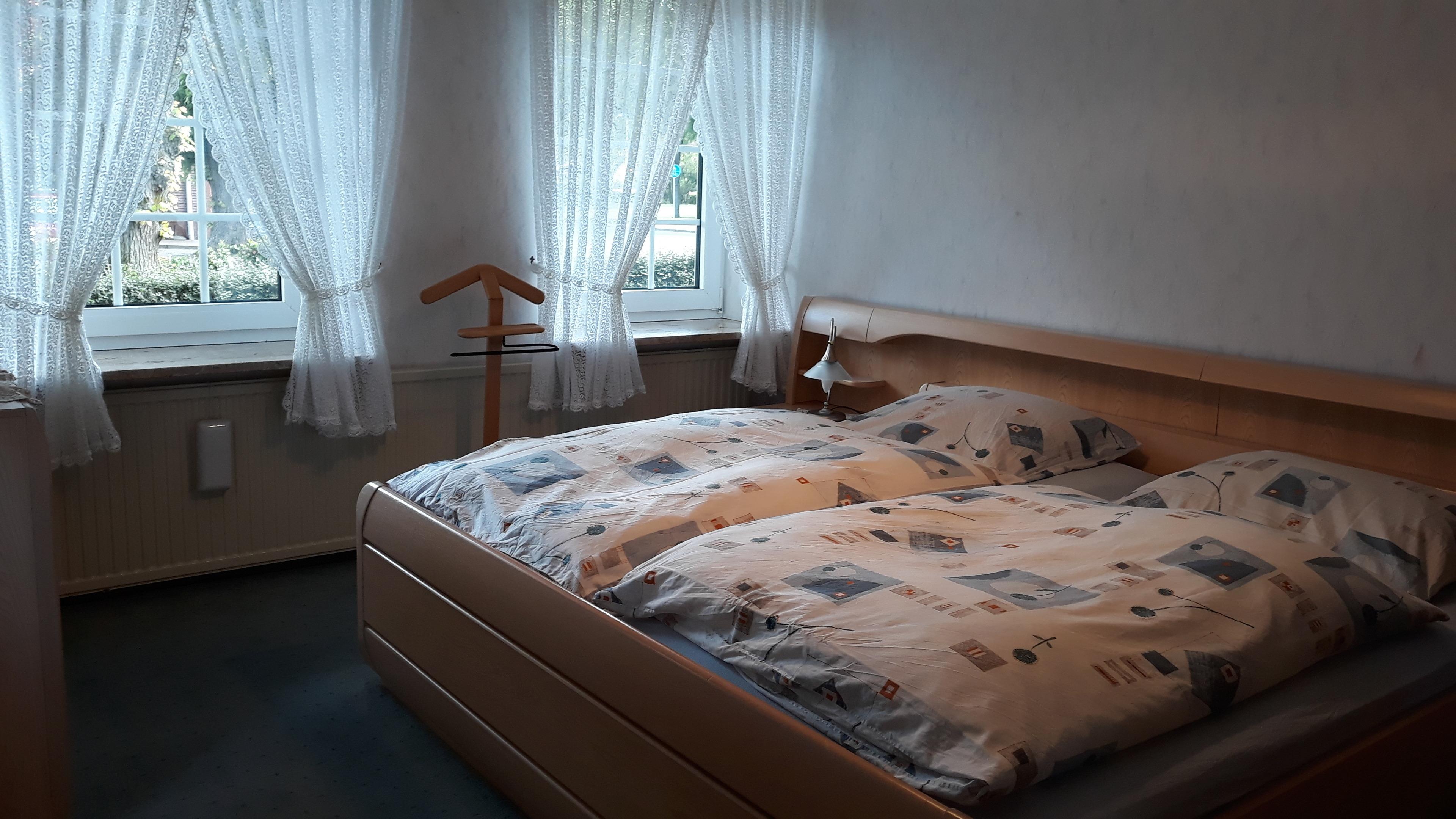 Das Ferienhaus steht direkt auf dem Hof, hat eine Größe von 90 qm und erstreckt sich über 2 Etagen. Im Erdgeschoss liegt das Wohnzimmer mit Fernseher, das (Eltern-) Schlafzimmer, die Küche mit Einbauküche und das Bad mit Dusche/ WC. Das zweite Schlafzimmer ist im Dachgeschoss und eignet sich sehr gut als Kinderzimmer mit bis zu 4 Betten. Zur Wohnung gehören eine große Terrasse und ein Garten, beides befindet sich direkt vor dem Haus. Gartenmöbel und ein Grill sind natürlich auch vorhanden. Für die Kinder gibt es einige Tretfahrzeuge.