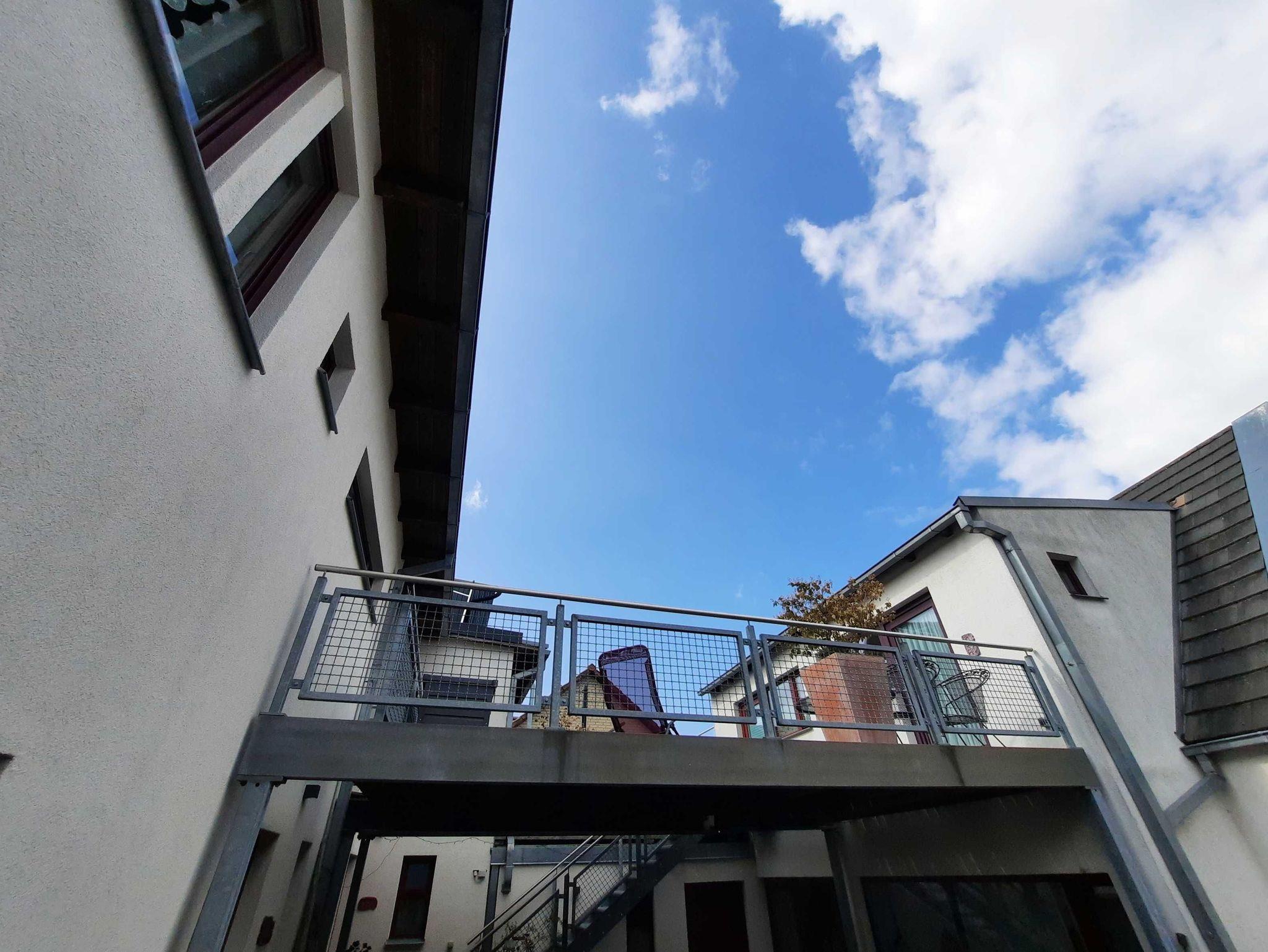 Von hier aus gelangen Sie auf den schön angelegten Innenhof und eine Terrasse, wo Sie die frische Luft genießen können. Der Innenhof bietet auch Zugang zu Ihrem Parkplatz mit Fahrradstellmöglichkeit.