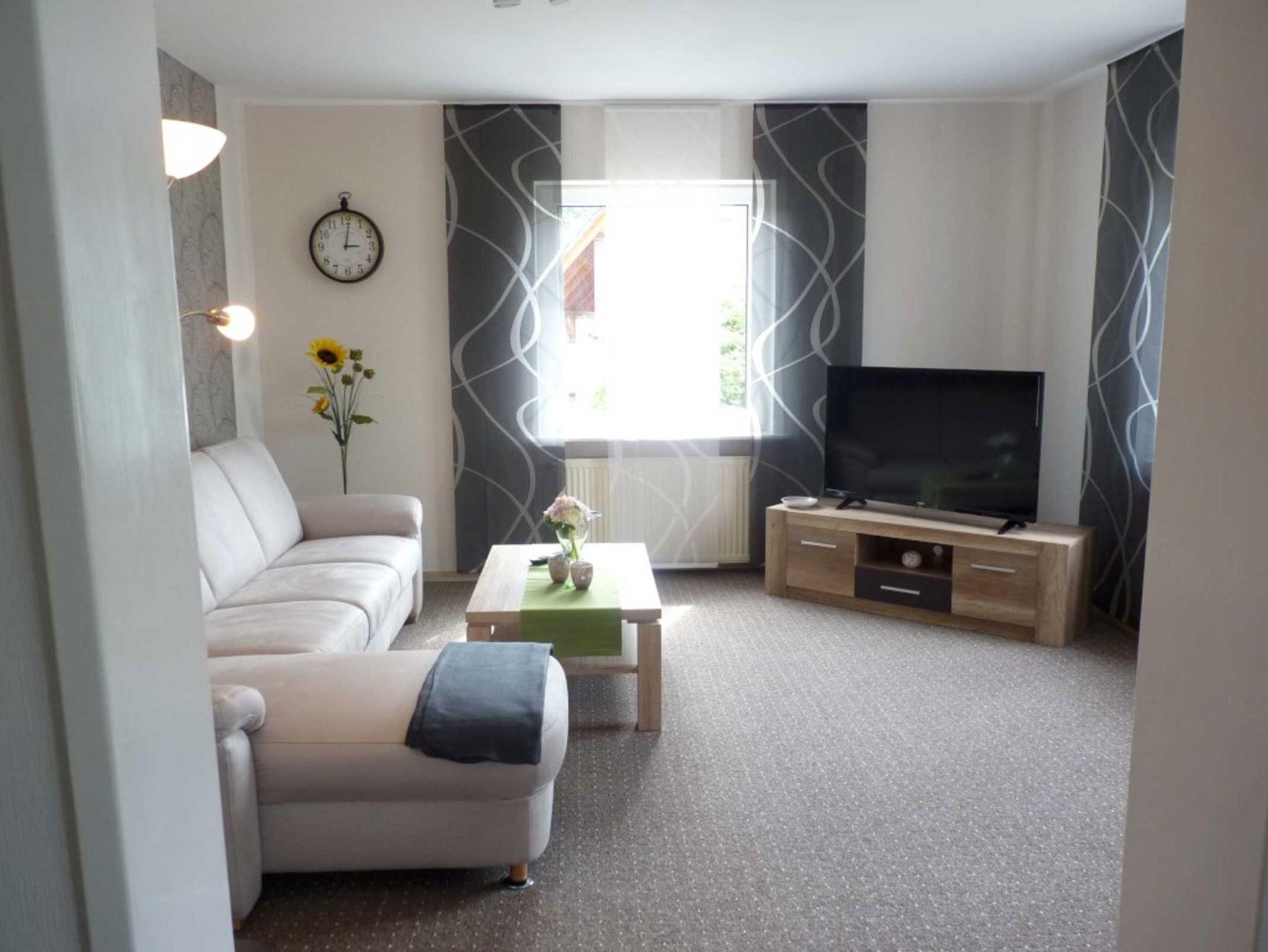 Die neu ausgestattete, liebevoll eingerichtete Ferienwohnung ist ab August 2017 bezugsfertig geworden. Sie befindet sich im Erdgeschoß des Hauses (2 Stufen), in dem auch eine 2. Ferienwohnung im 2.OG vermietet wird. Die Bilder spiegeln modernes, schönes und großzügiges Wohnen wieder. Die Wohnung besteht aus einem kombinierten Wohn- und Essraum. Das Schlafzimmer ist ausgestattet mit einem modernen Boxspringbett. In der Küche ist ebenfalls ein Sitzplatz vorhanden und das moderne Bad mit Fenster bietet Dusche und WC. W-LAN ist in dieser Wohnung vorhanden. Auf dem Gartengrundstück steht für diese Ferienwohnung ein Freisitz mit Gartenmöbeln zur Verfügung. Für Fahrräder ist eine abschließbare Abstellmöglichkeit vorhanden. Der PKW kann auf dem Grundstück im Carport untergestellt werden.