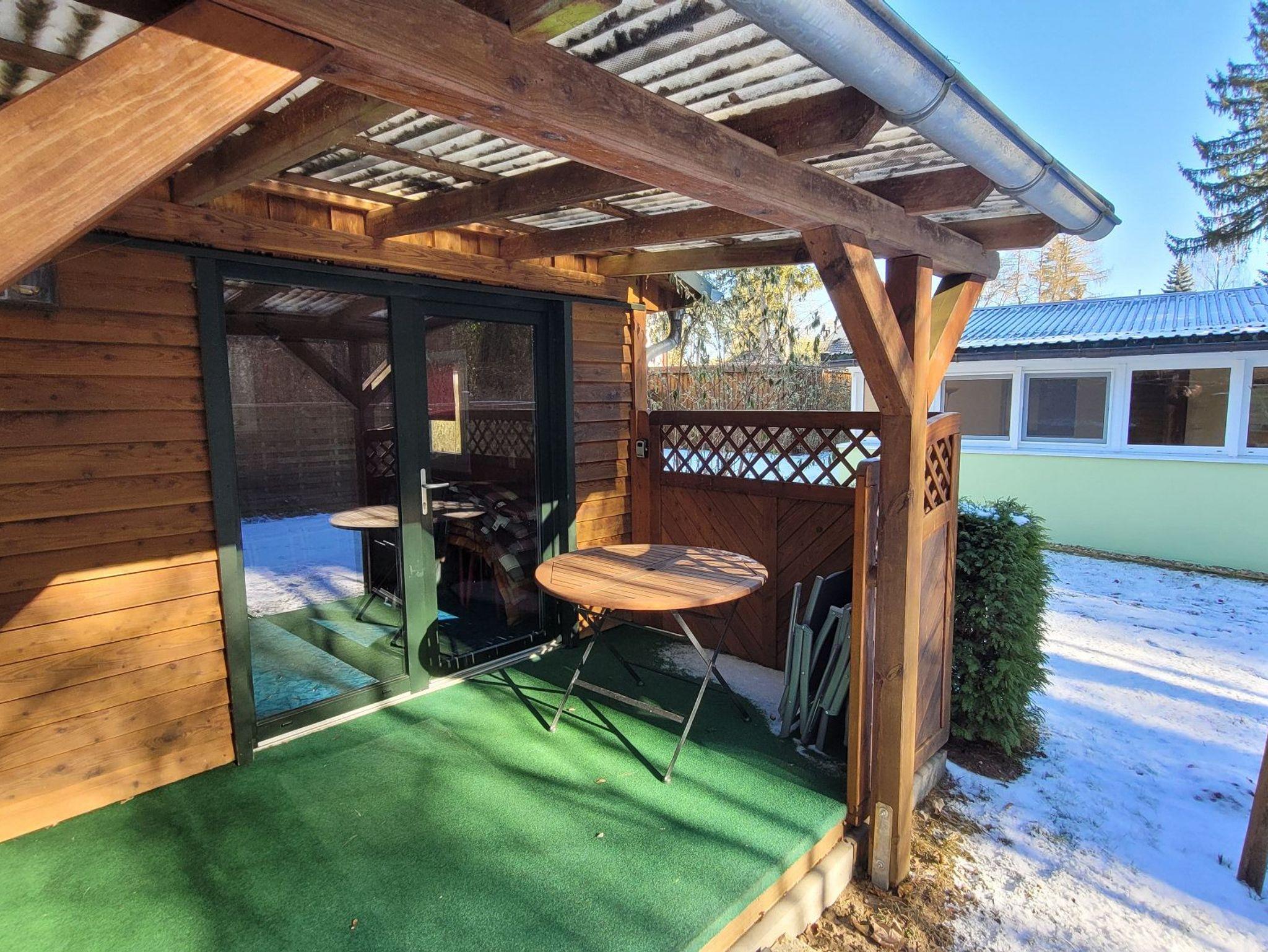 Das Wochenendhäuschen ist ein idyllischer Rückzugsort inmitten der Natur! Die Lage am Rand des Müritz-Nationalparks bietet eine perfekte Möglichkeit, dem Alltag zu entfliehen und die Ruhe zu genießen. Der Wintergarten und das Gartenhaus ergänzen den Charme des Anwesens und bieten zusätzlichen Platz für Entspannung und Freizeitaktivitäten. Das zusätzliche kleine Gartenhaus ist ein sehr gemütlichen Rückzugsort für zwei Personen! Die Ausstattung mit einem Doppelbett, Fernseher und Kleiderschrank sorgt für komfortable Übernachtungsmöglichkeiten, und das Tageslichtbad mit WC und Waschbecken bietet zusätzliche Bequemlichkeit. Es ist also ideal für Gäste, die etwas mehr Privatsphäre und eine besondere Atmosphäre suchen, ohne auf Annehmlichkeiten verzichten zu müssen.