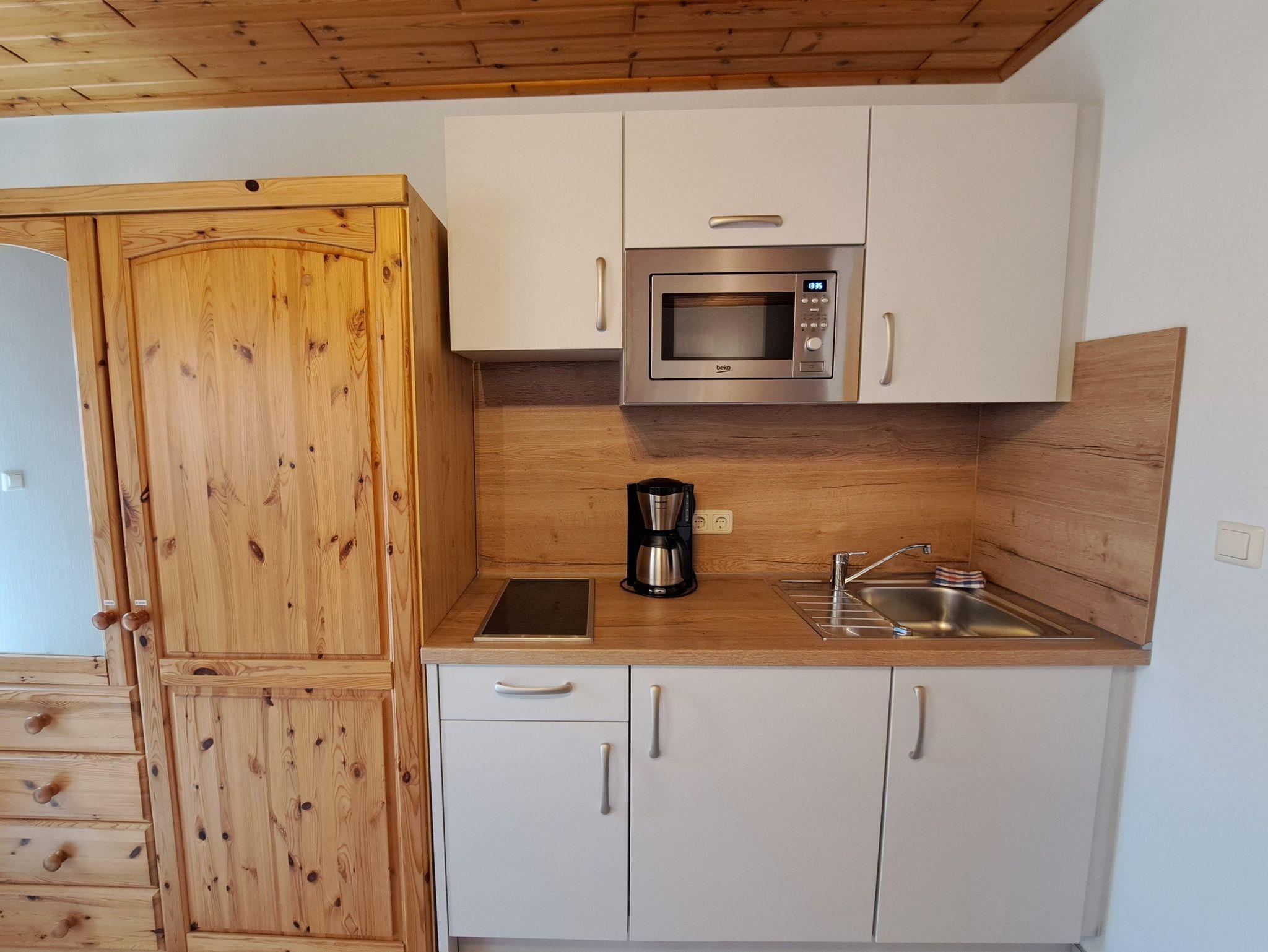 Das kleine Ferienhaus mit einem kombinierten Wohn-/Schlafraum ist gemütlich ausgestattet und wurde 2023 liebevoll renoviert. Das Ferienhaus verfügt über eine kleine Einbauküche mit einem Kühlschrank und einer Mikrowelle, 2 Einzelbetten und eine große gemütliche Couch. In der Unterkunft ist nur ein kleiner Hund erlaubt mit einer Schulterhöhe von bis zu 30 cm.