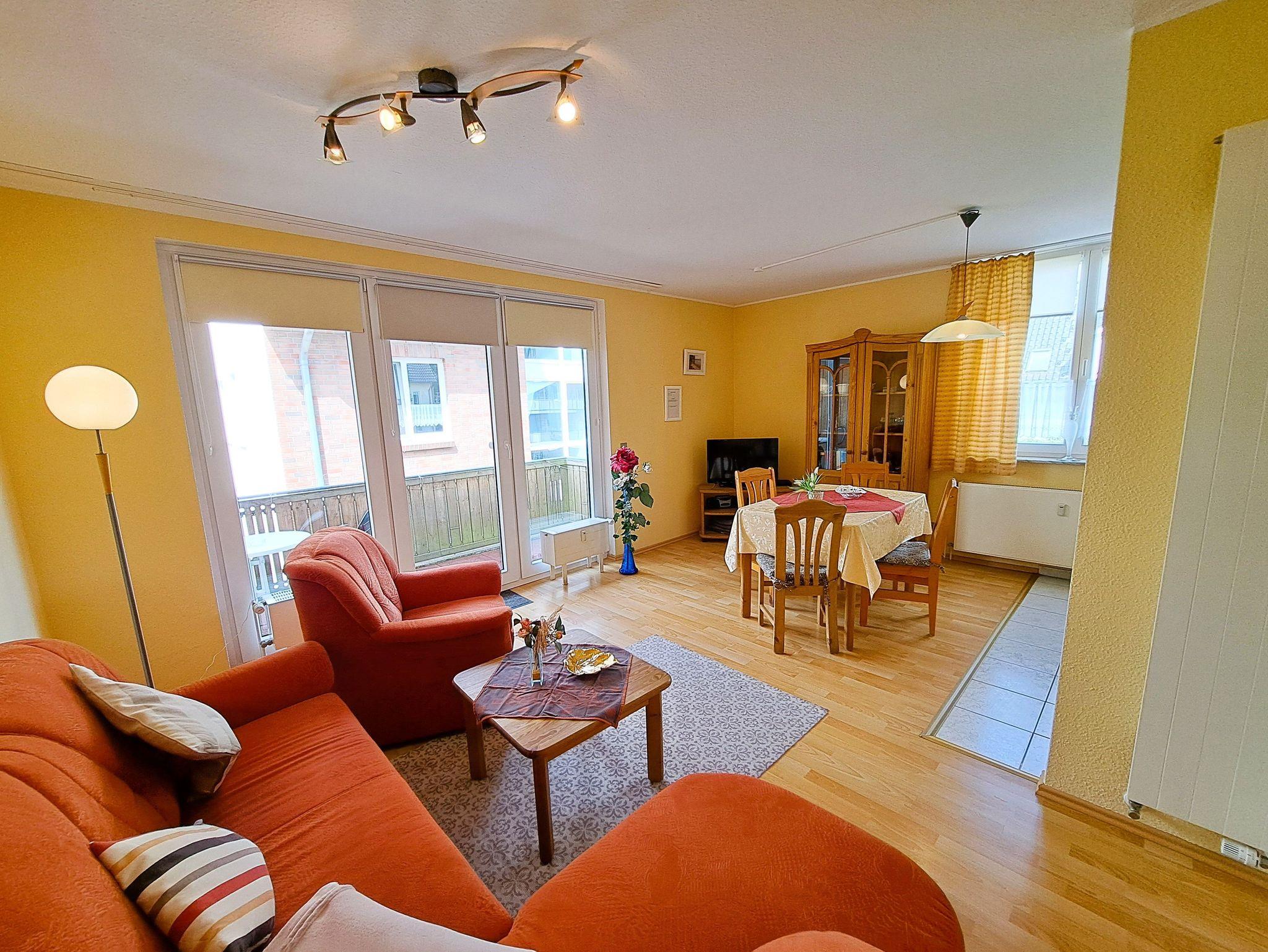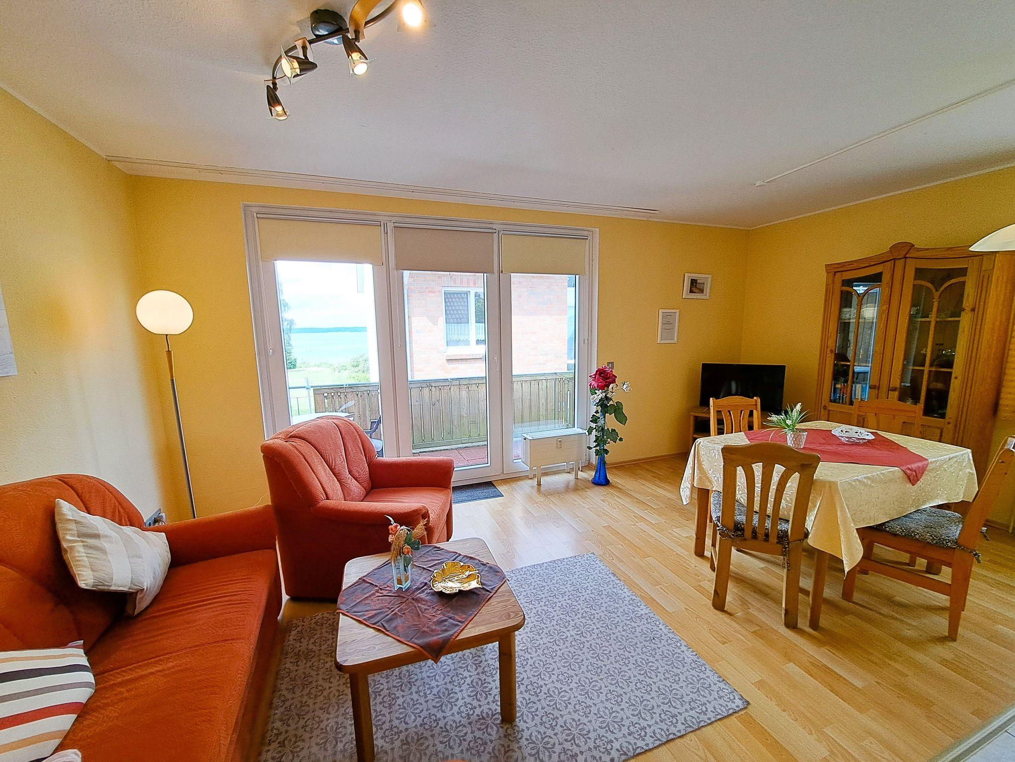 Die Ferienwohnung befindet sich im 1. OG und bietet Ihnen 1 Wohnzimmer mit Eckcouch, TV, Esstisch und Einbauküche, ein Schlafzimmer mit Doppelbett und großem Schrank, ein Bad mit Dusche und WC. Der Balkon bietet Ihnen einen Teilblick auf die Müritz. Die Aufbettung für die 3. Person wäre auf der Couch (ausziehbar). Die Ausstattung ist hell, freundlich und sehr gepflegt.