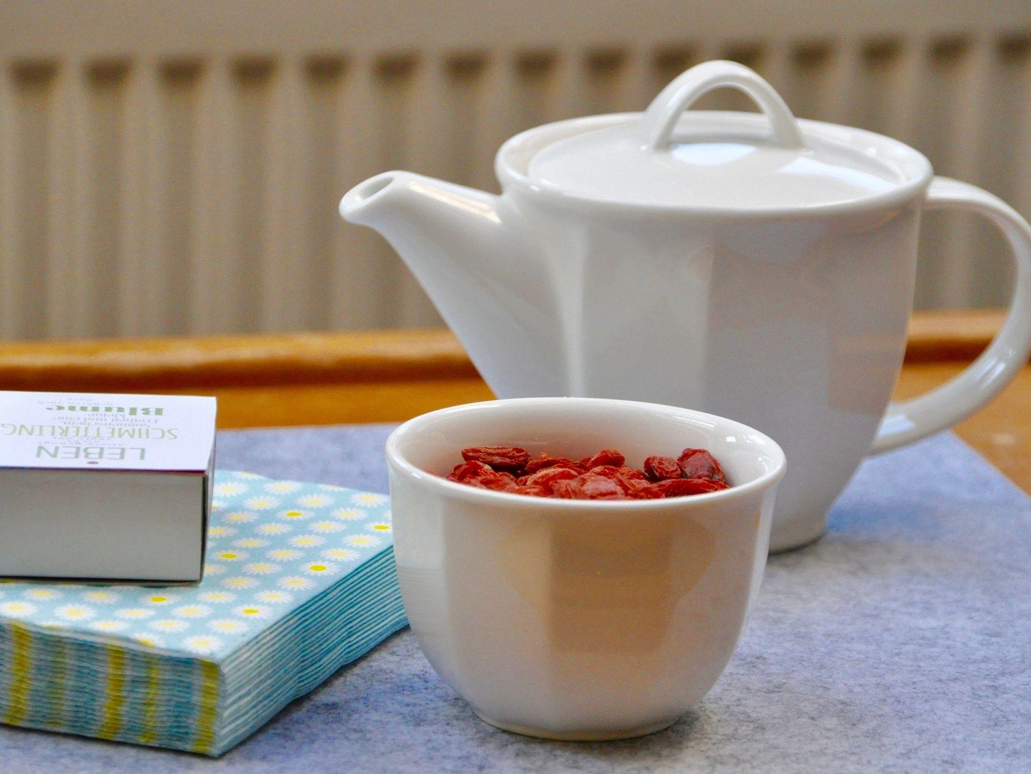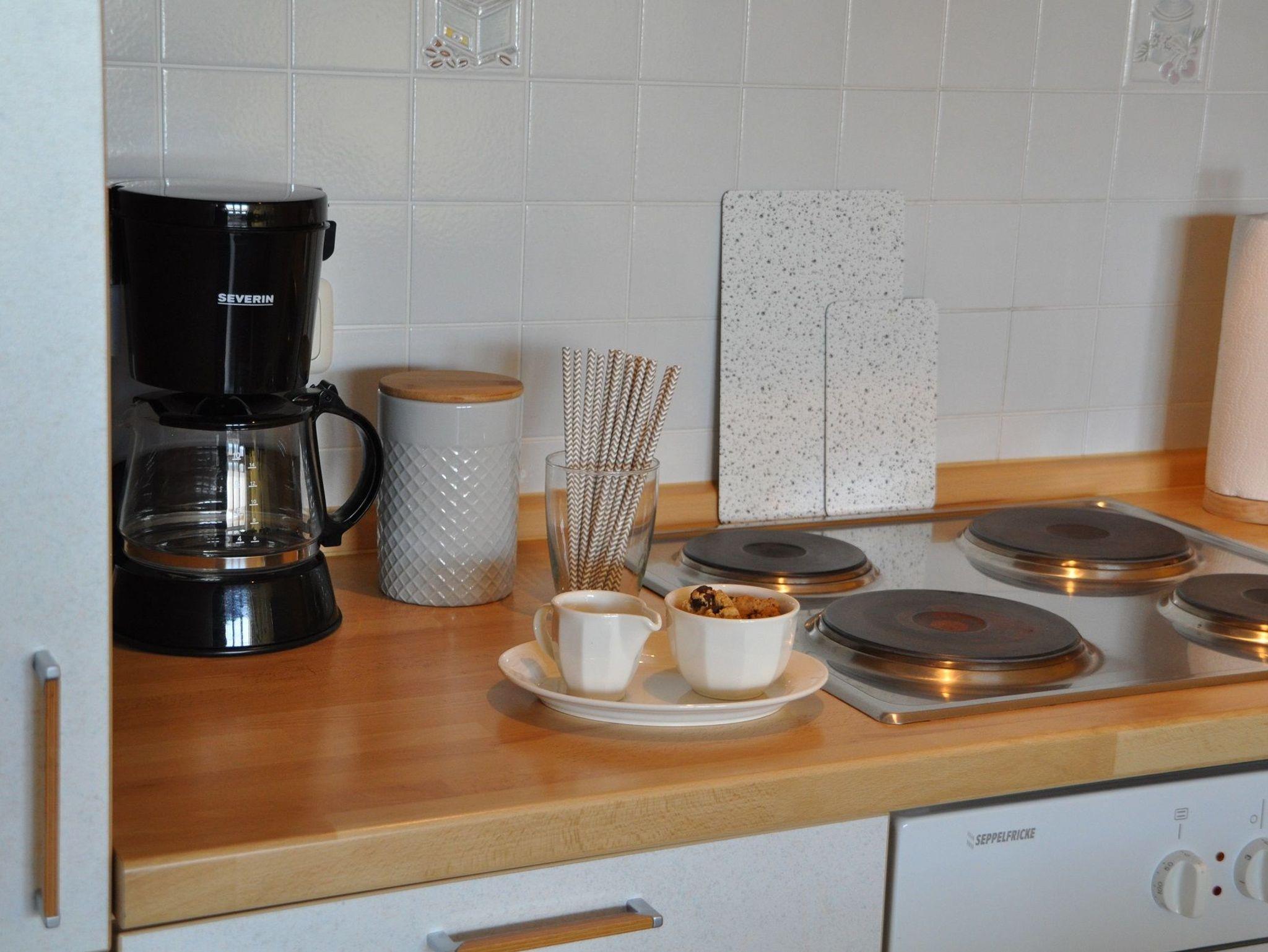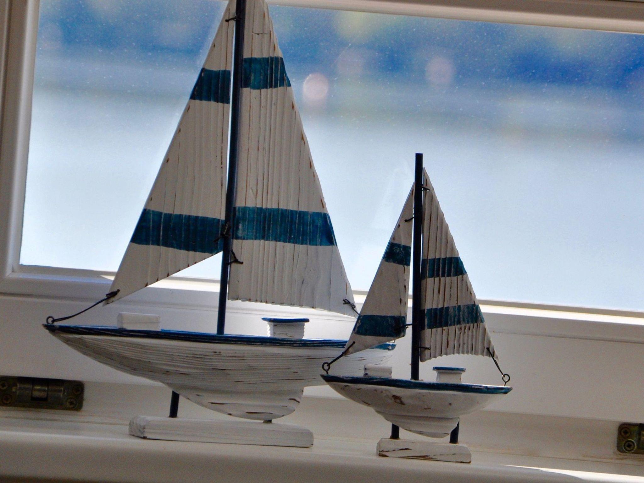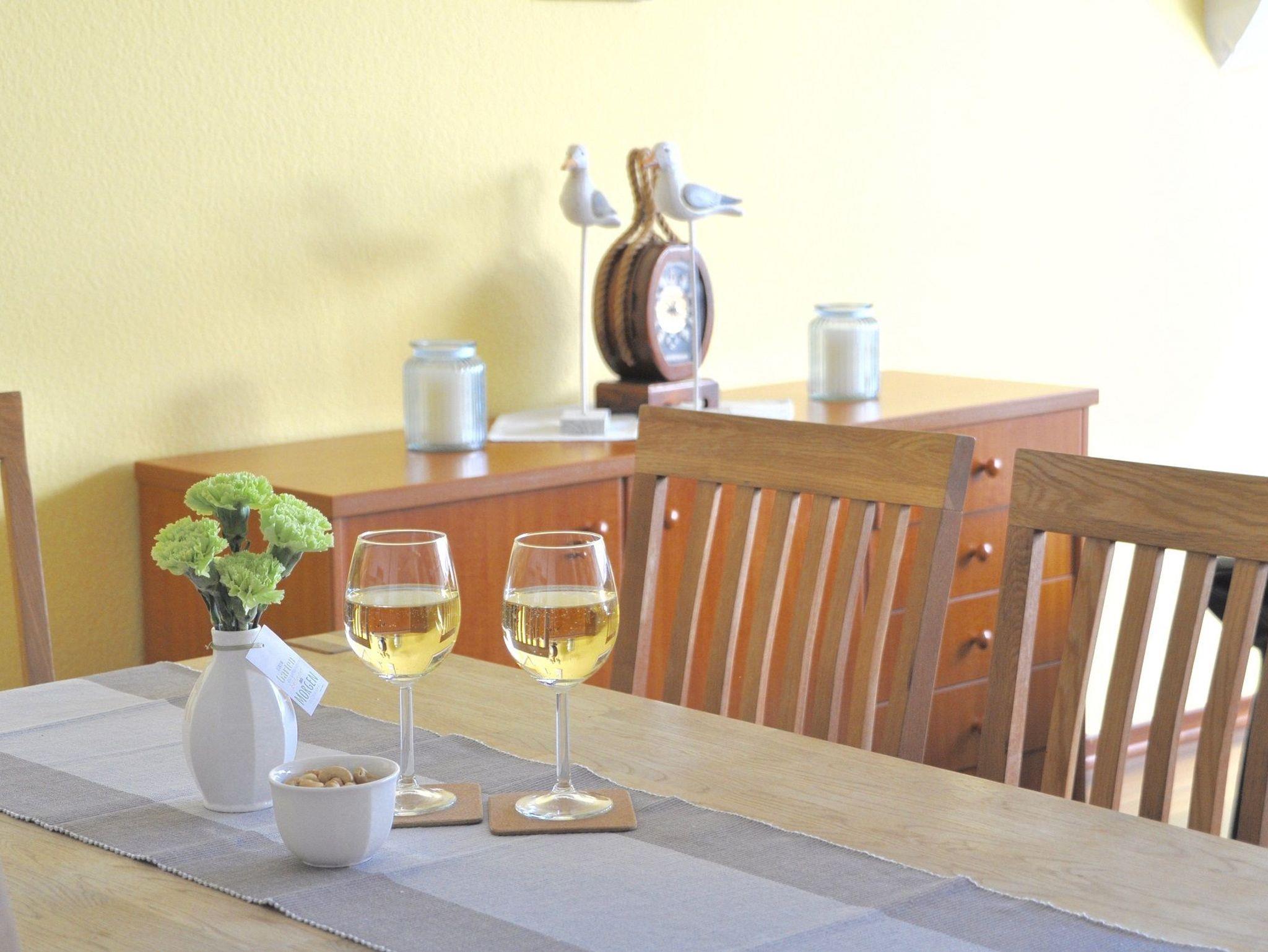 Vier Personen können am großen Esstisch im Küchenbereich platz nehmen. Vom Wohnzimmer und oberen Schlafzimmer haben Sie einen sehr schönen Ausblick auf das Wasser und die Umgebung.