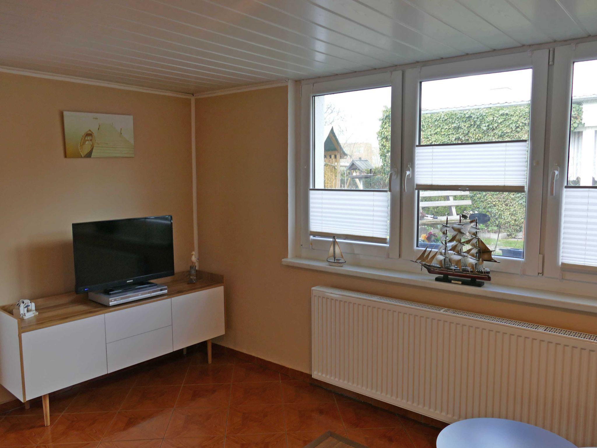 Das Ferienhaus über 2 Ebenen ist neuwertig und gemütlich eingerichtet. Im Erdgeschoss befindet sich ein Wohnzimmer und TV, die Einbauküche und ein modernes Bad mit Dusche und WC (Renovierung 2018). Der Schlafraum mit einem Doppel- und einem Einzelbett befindet sich im Obergeschoss=Dachgeschoss. Eine überdachte Terrasse lädt zum Verweilen im Garten ein. Die Couch im Wohnzimmer kann nicht aufgebettet werden.