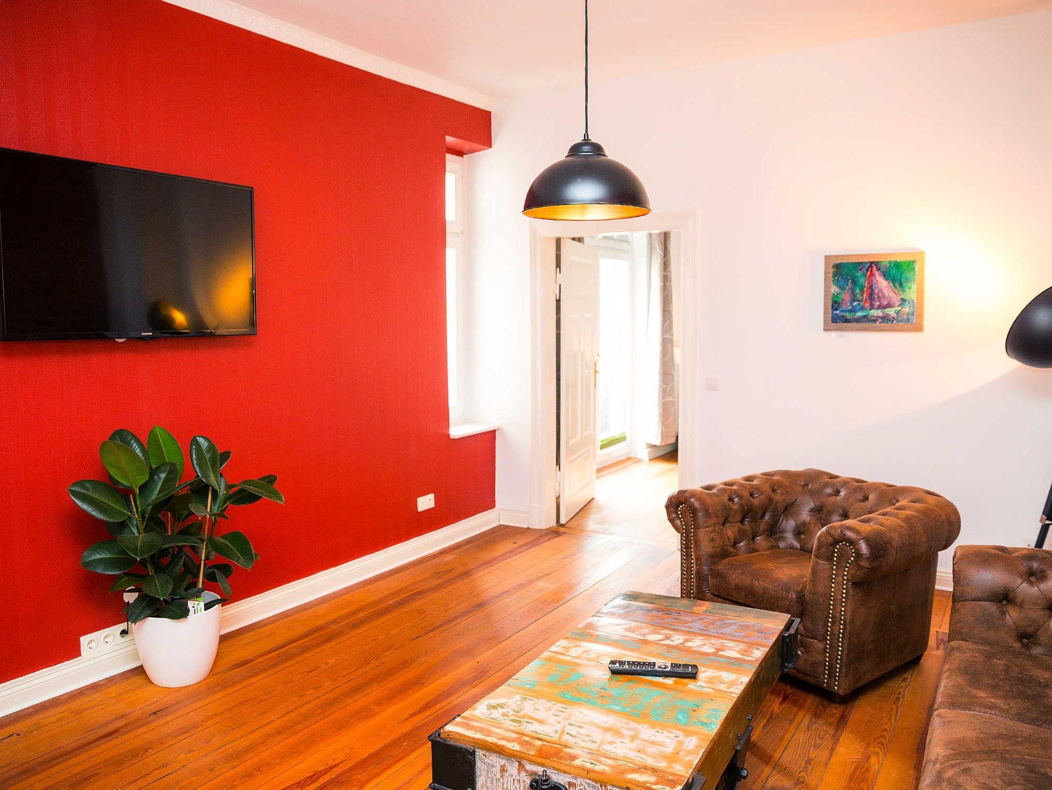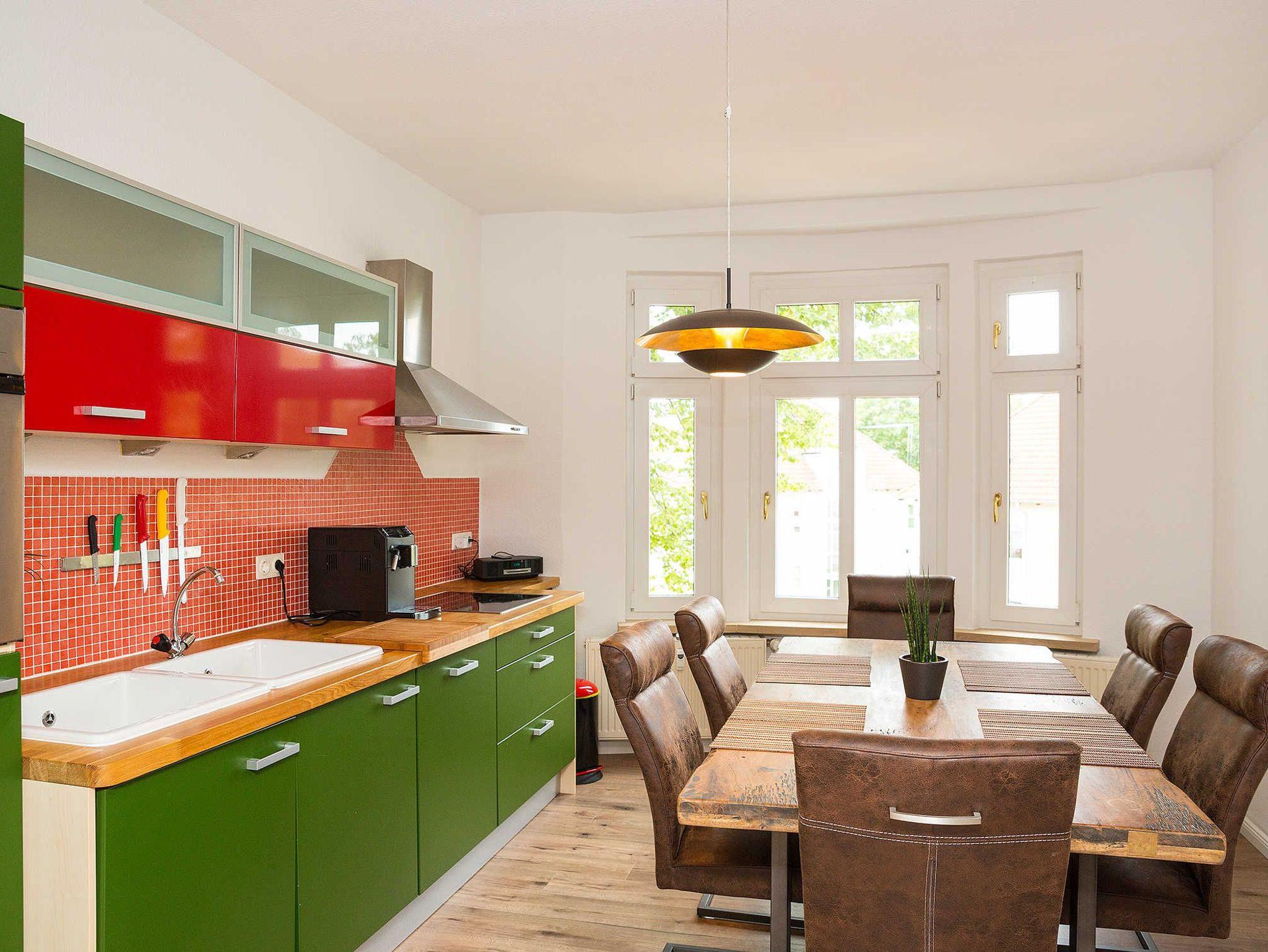 Die Küche ist wie gewohnt, mit allen Annehmlichkeiten des täglichen Bedarfs ausgestattet. Hier fällt beim Betreten sofort der rote Kühlschrank auf. Selbstverständlich fehlt auch hier nicht der Kaffeevollautomat, wie in all unseren Wohnungen.