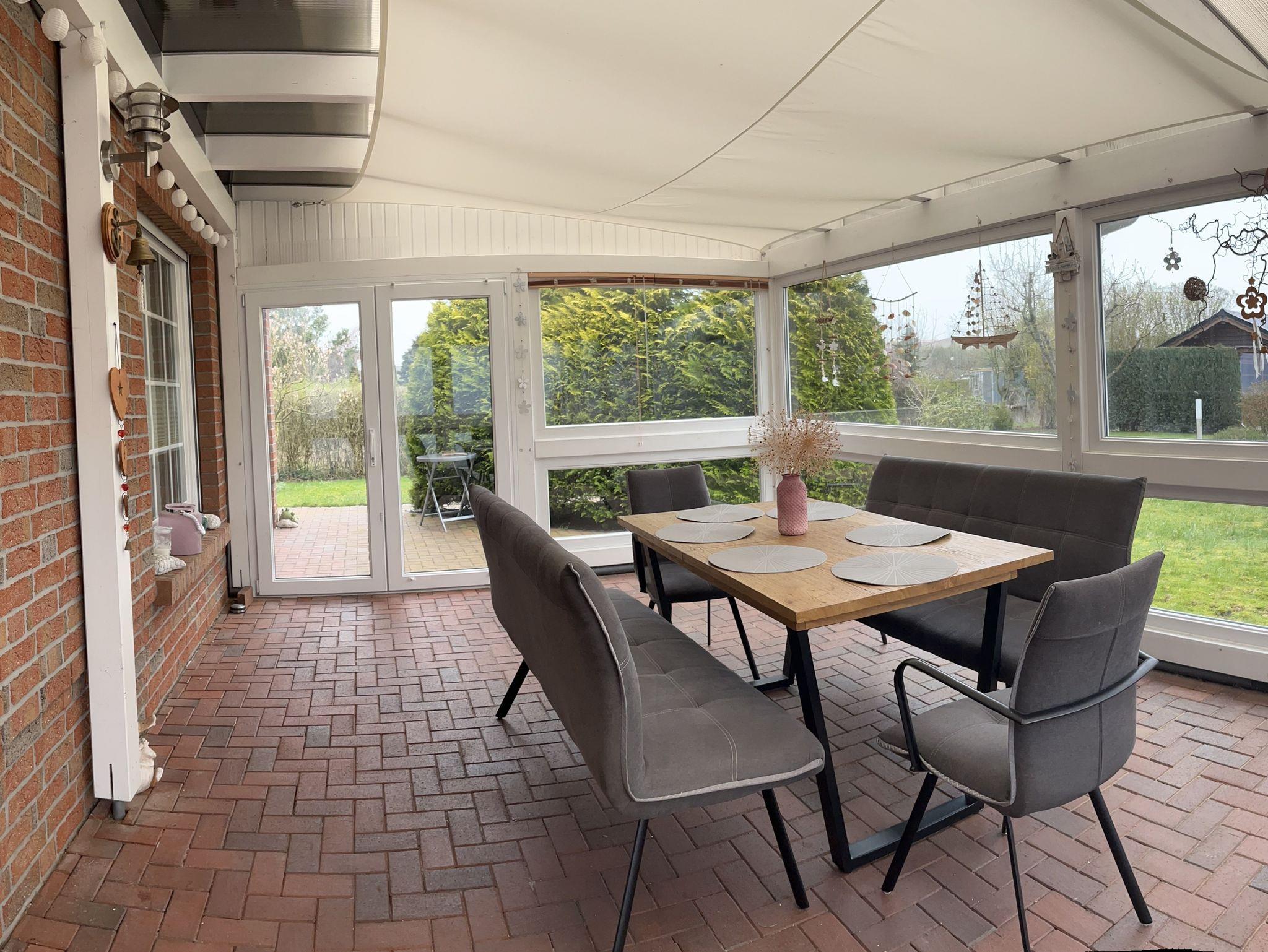 Ein besonderes Highlight ist der 24 m² große Wintergarten ein geschützter Ort, der auch an kühleren Tagen zum Verweilen einlädt. Ob für Mahlzeiten im Tageslicht, entspannte Stunden mit Blick ins Grüne oder ruhige Momente zwischendurch hier genießen Sie den Urlaub in vollen Zügen.