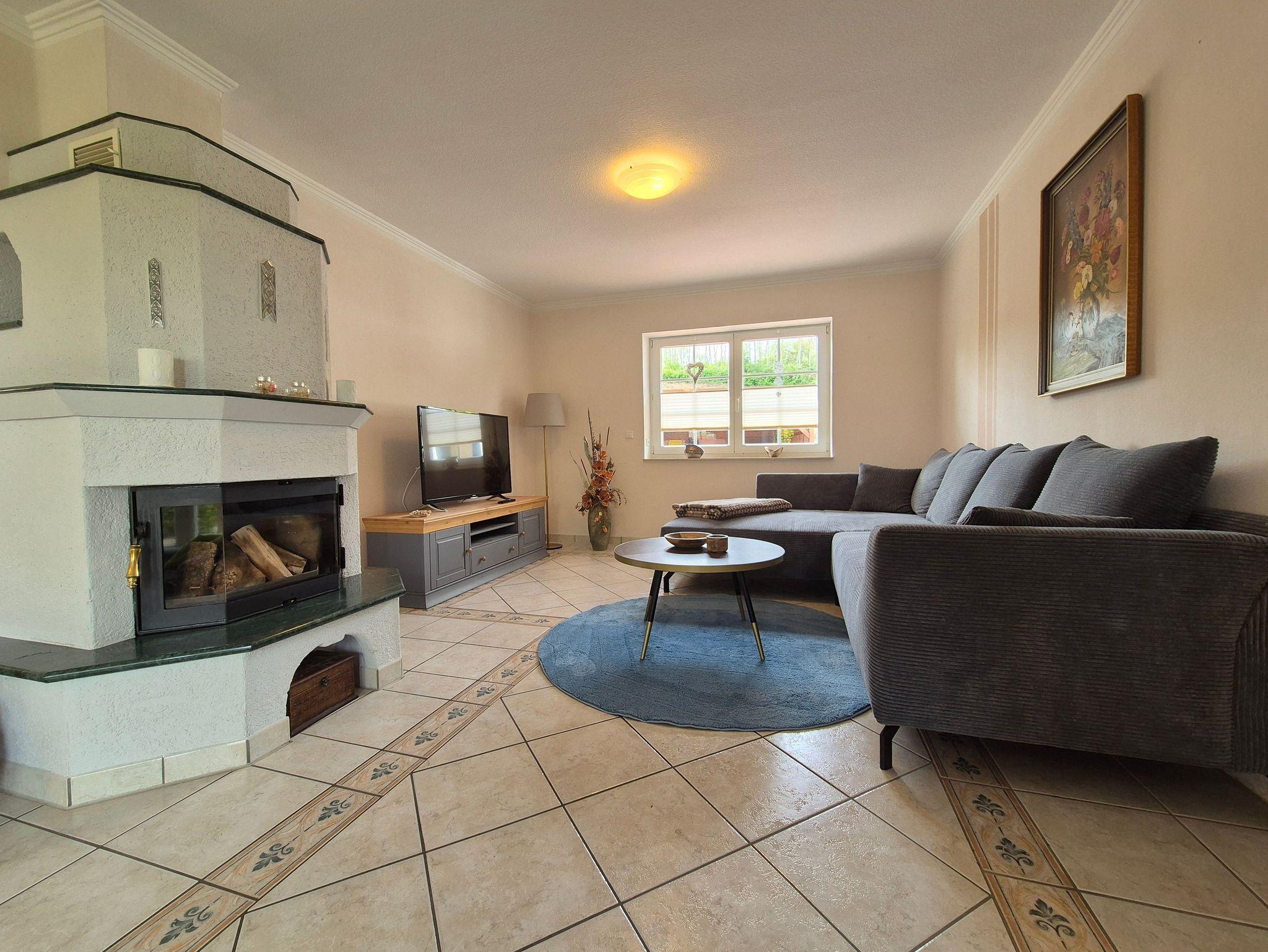 Im Erdgeschoss erwartet Sie ein helles, einladendes Wohnzimmer mit bequemen Sitzgelegenheiten, einem Kamin und einem Smart-TV perfekt für gesellige Abende, entspannte Filmstunden oder gemütliche Gespräche am Kamin bei einem Glas Wein.
