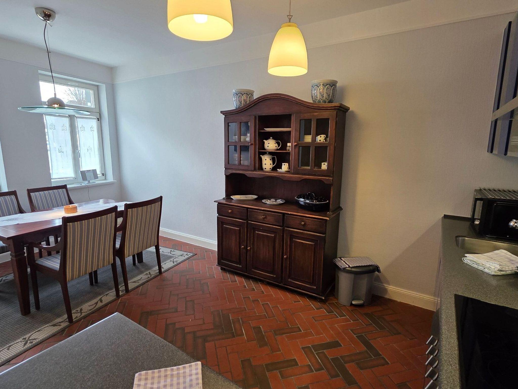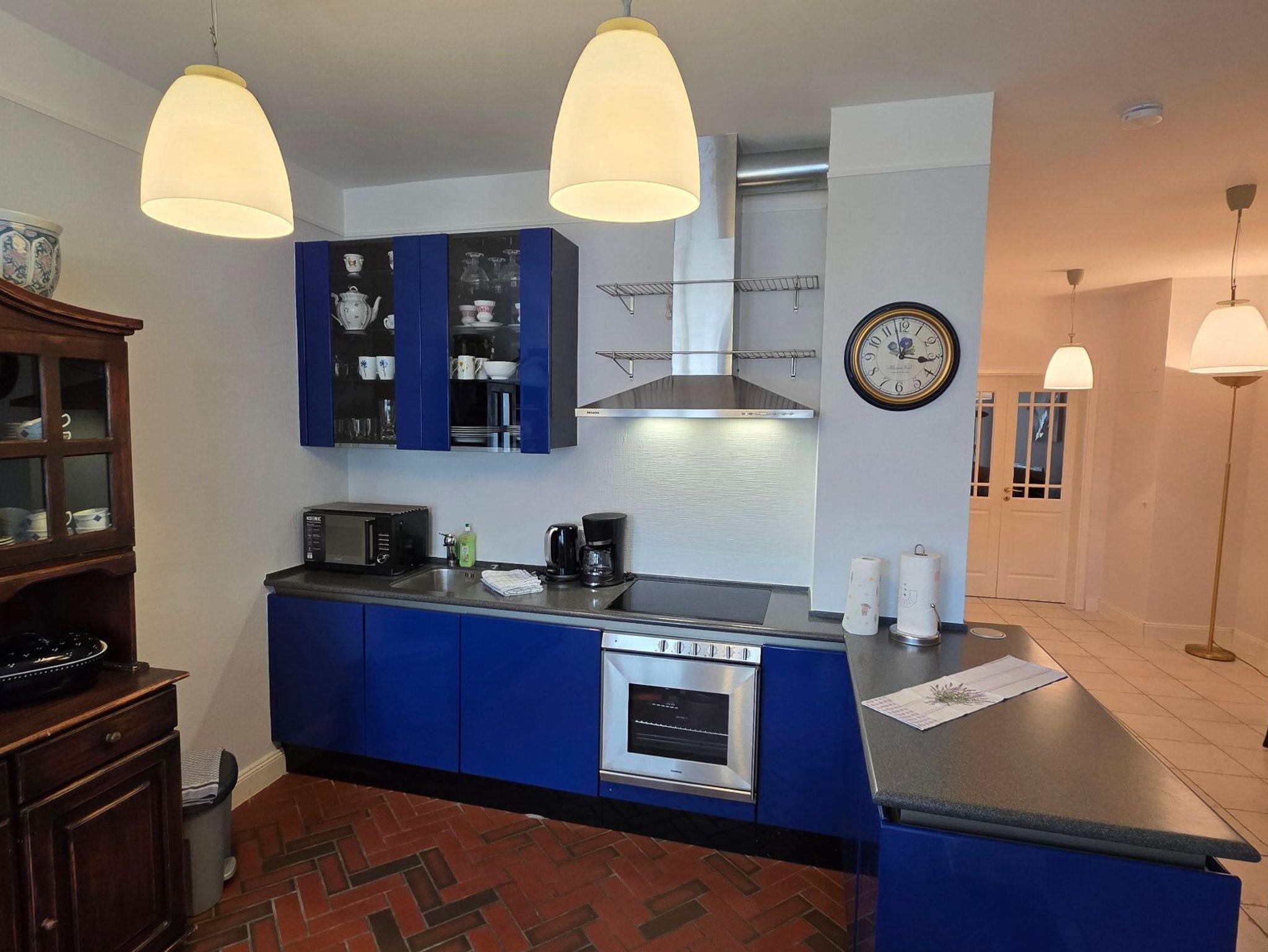 Die großzügige Wohnküche vereint auf gelungene Weise traditionelle Elemente mit moderner Ausstattung. Hier können Sie entspannt frühstücken und dabei den Blick auf den Alten Markt genießen oder am Abend gemeinsam kochen und den Tag ausklingen lassen.