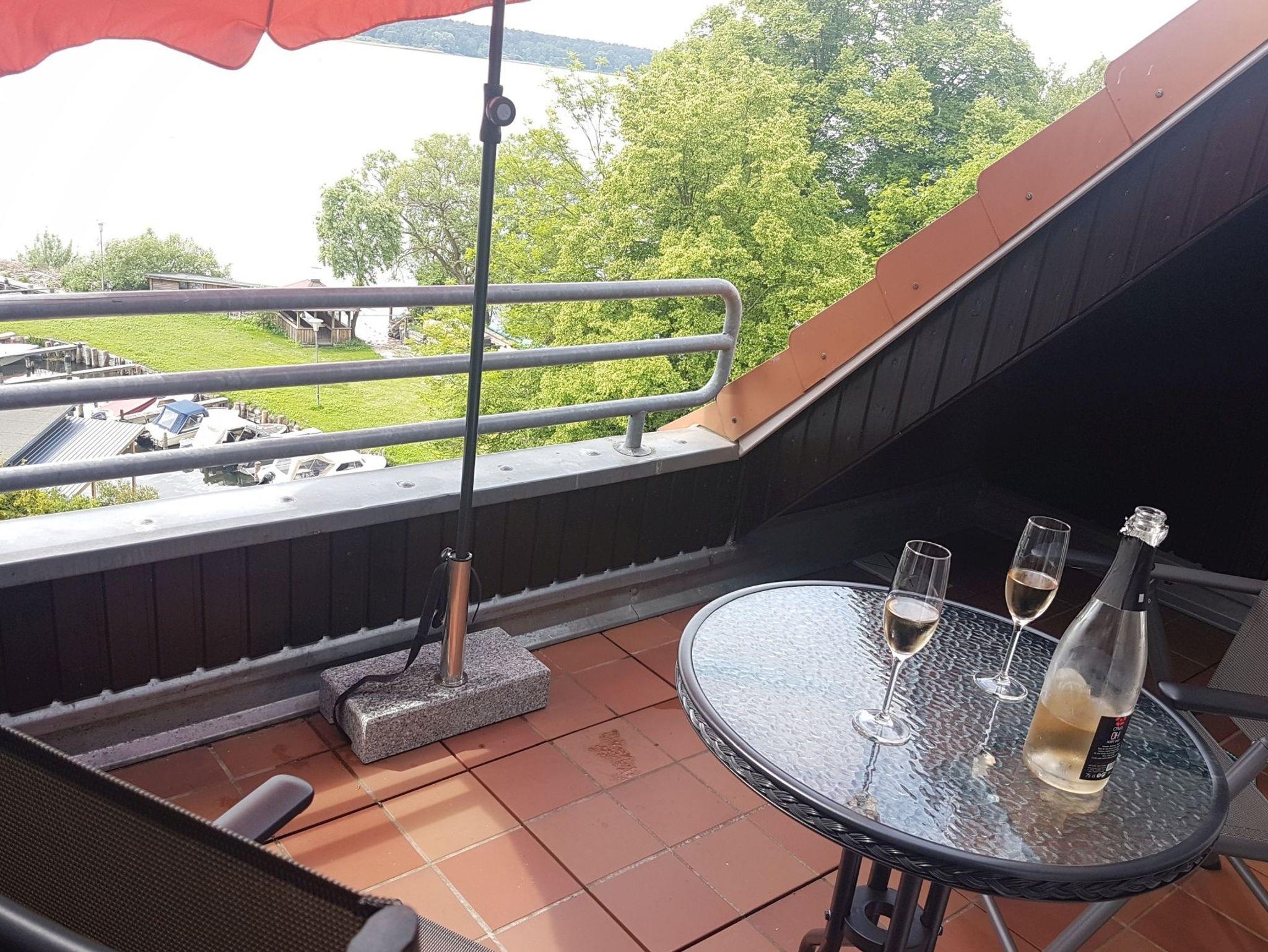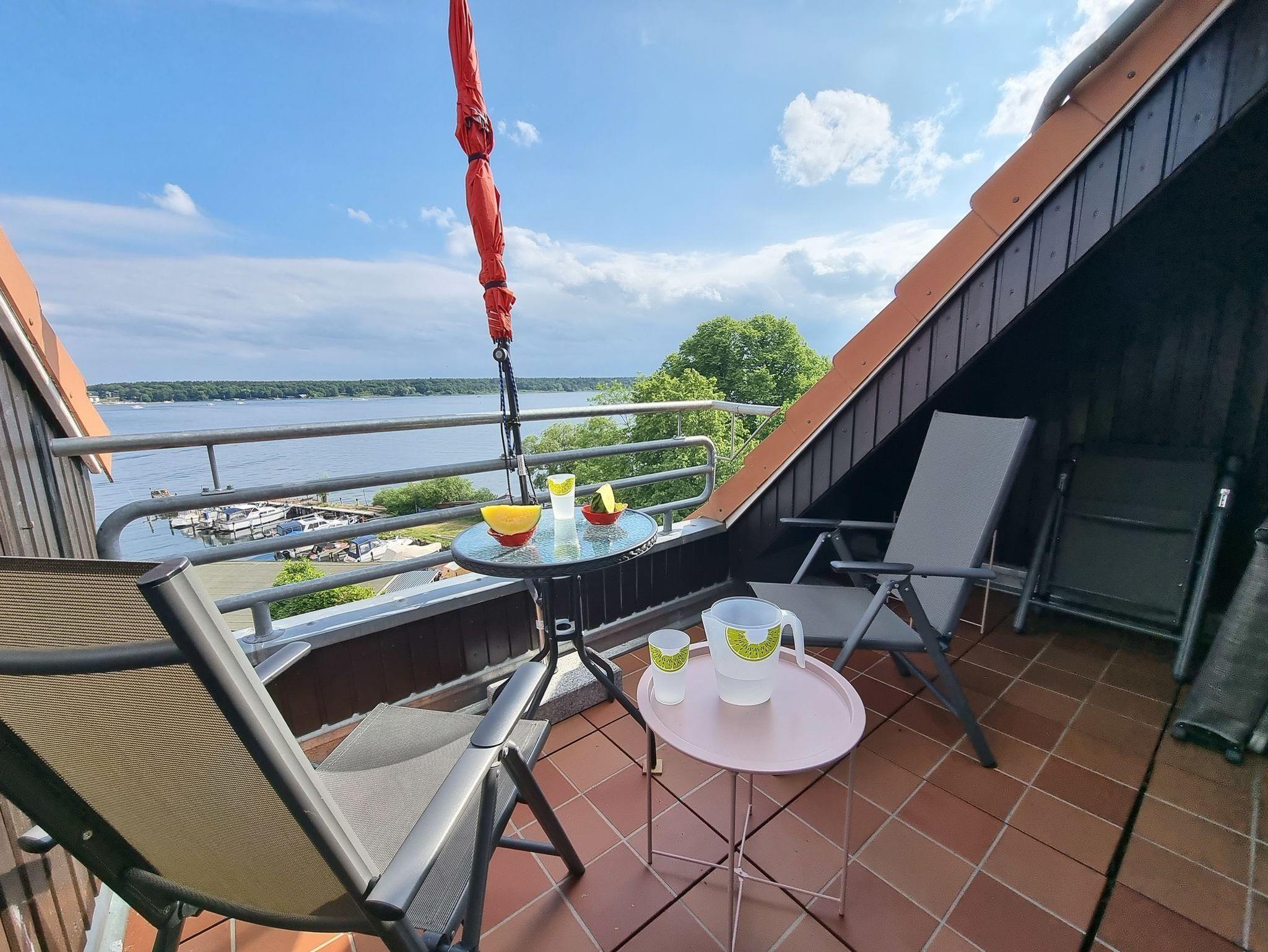 Genießen Sie von der Couch oder auch vom Essbereich aus den Blick auf die Boote und die Müritz. Direkt neben dem Haus befindet sich die Uferpromenade mit einem ruhigen Park; auf den man von allen Seitenfenstern aus blicken kann.