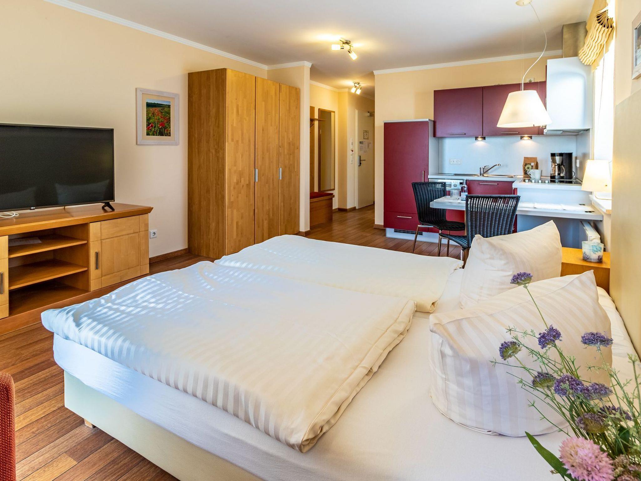 Bei der Erstellung und der Einrichtung des Neubaus wurde großer Wert auf die Bedürfnisse unserer Gäste gelegt. So verfügt das Appartement, was sich in der 2. Etage befindet, über einen unverbauten Blick direkt auf den Hafen und von Ihrem Balkon wird so mancher schöner Sonnenuntergang mit der Hafenkulisse und dem weiten Blick über die Müritz in guter Erinnerung bleiben.