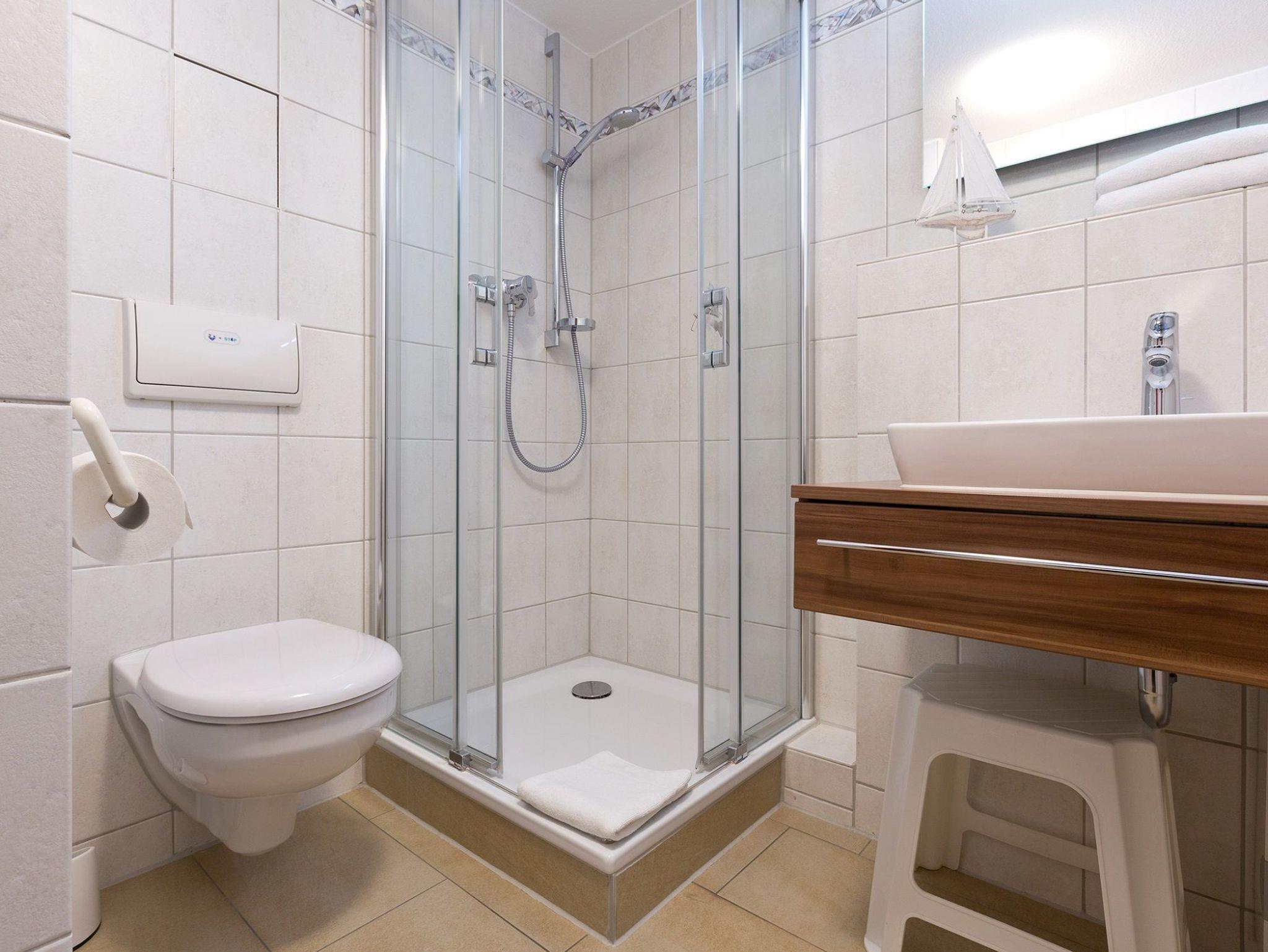 Das Appartement befindet sich in der 4. Etage und besteht aus einem Wohnraum mit integrierter Küchenzeile, einem Doppelbettschlafzimmer. Von hier erreichen Sie über die Treppe die obere Etage und den Zugang zur möblierten Loggia, von welcher Sie den weiten Blick über die Müritz genießen können. Das Wohnzimmer ist modern mit Schlafsofa, Sessel, CD Radio,TV und Esstisch eingerichtet. Die Küchenzeile verfügt über Kaffeemaschine, Wasserkocher, Toaster, Elektroherd, Backofen, Kühlschrank, Geschirr und Besteck.
