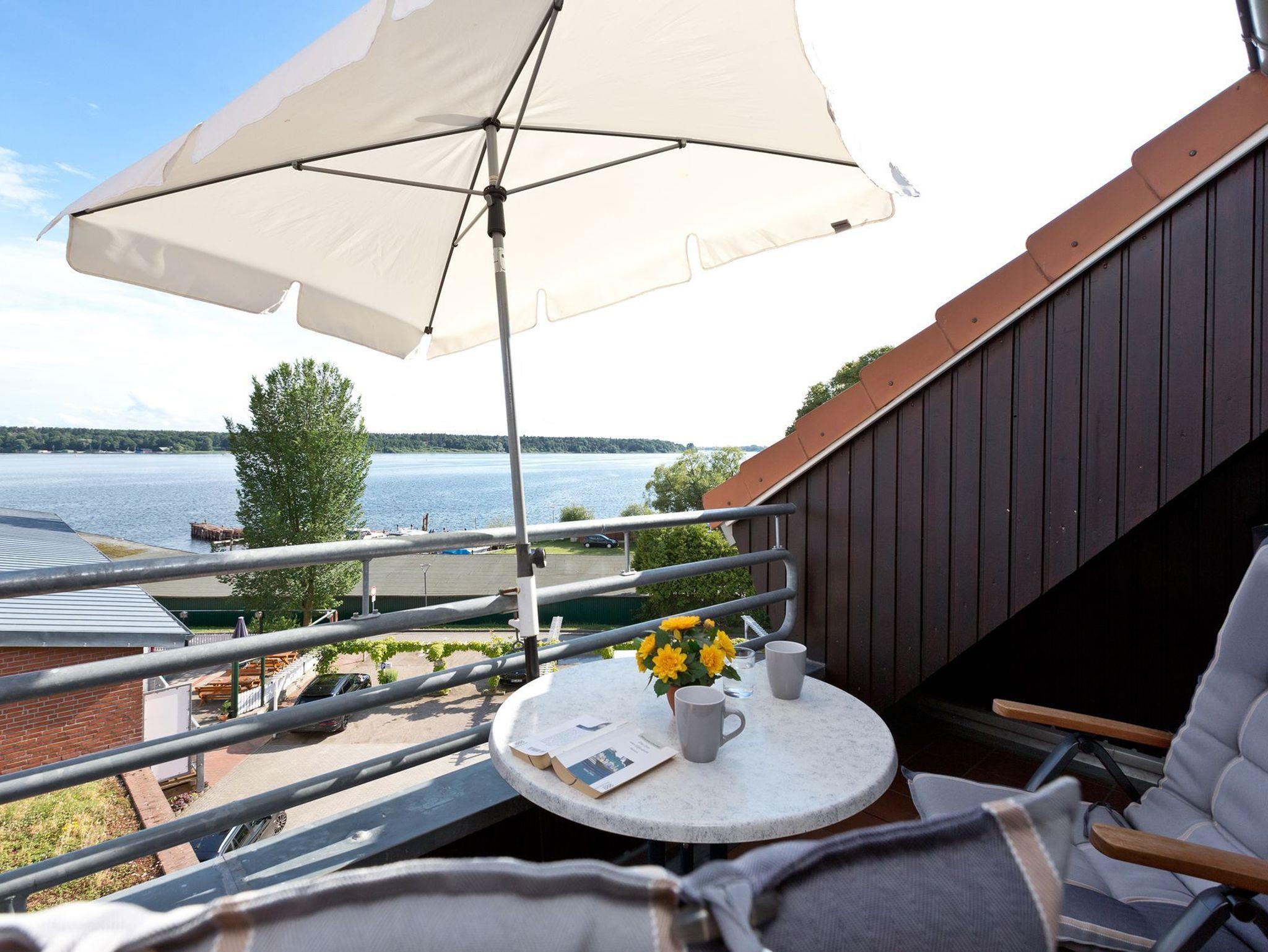 Die schöne 2-Zimmerwohnung mit Seeblick liegt in der 3. Etage, mit Fahrstuhl erreichbar. Das Appartement verfügt über: Wohnungsflur, Abstellraum, großzügiges Bad mit Dusche, großes separates Schlafzimmer mit einem Doppelbett, Wohn-Esszimmer mit Sofa, Sessel, Kabel-Flat-TV, CD-Radio, Bücherauswahl, Essplatz und Küchenzeile (komplett ausgestattet). kostenfreier Pkw-Stellplatz, Fahrradkeller. Von der möblierten Loggia haben Sie einen schönen Blick über die Müritz und die Altstadt von Waren.