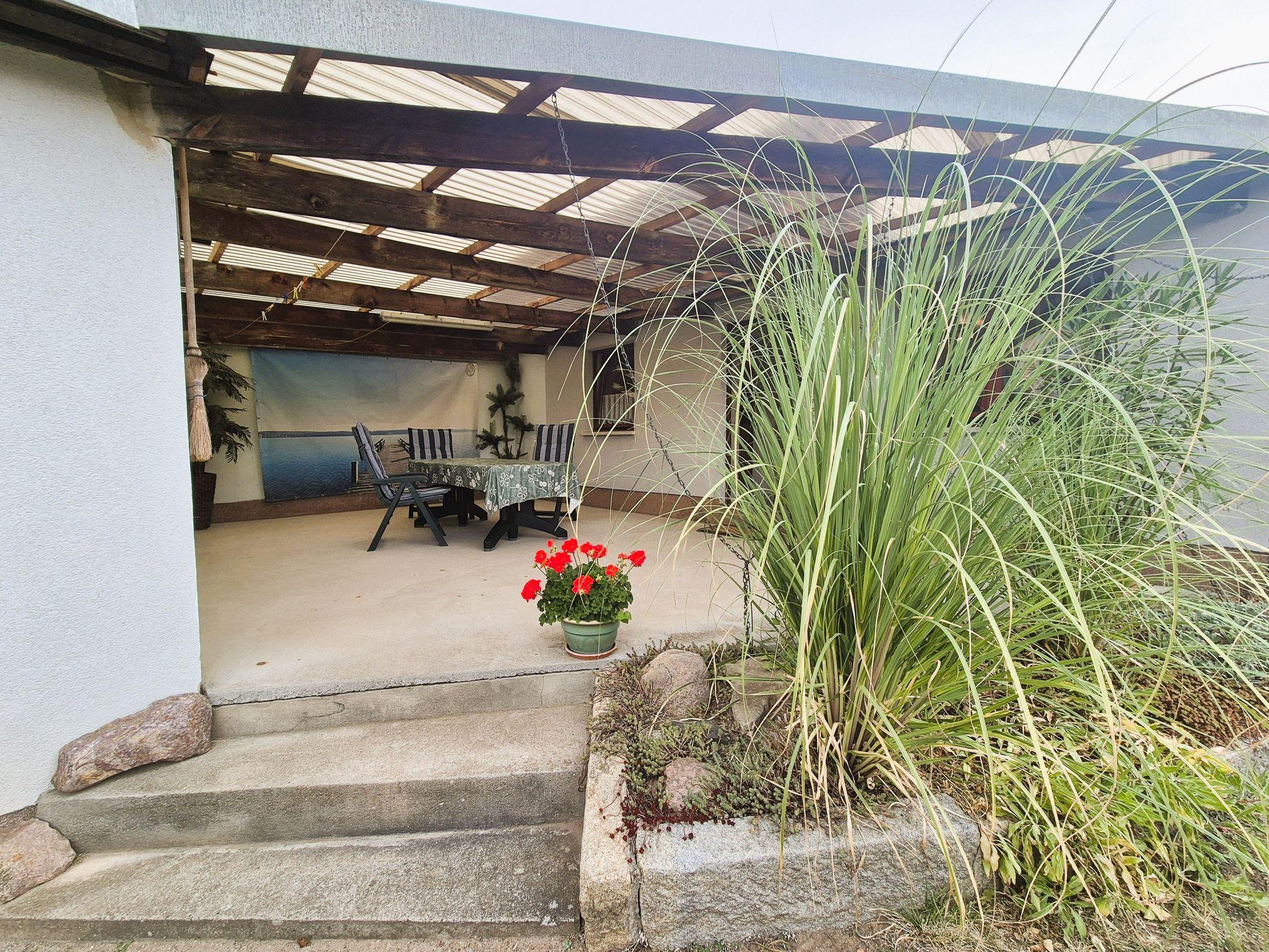 Unser Ferienhaus befindet sich direkt auf dem grünen Grundstück der Vermieter und bietet alles, was Sie für einen entspannten Aufenthalt benötigen. Genießen Sie die sonnigen Tage auf der großzügigen, überdachten Außenterrasse ideal zum Verweilen und Entspannen. Das grüne, gepflegte Grundstück steht Ihnen ebenfalls zur Mitbenutzung zur Verfügung.