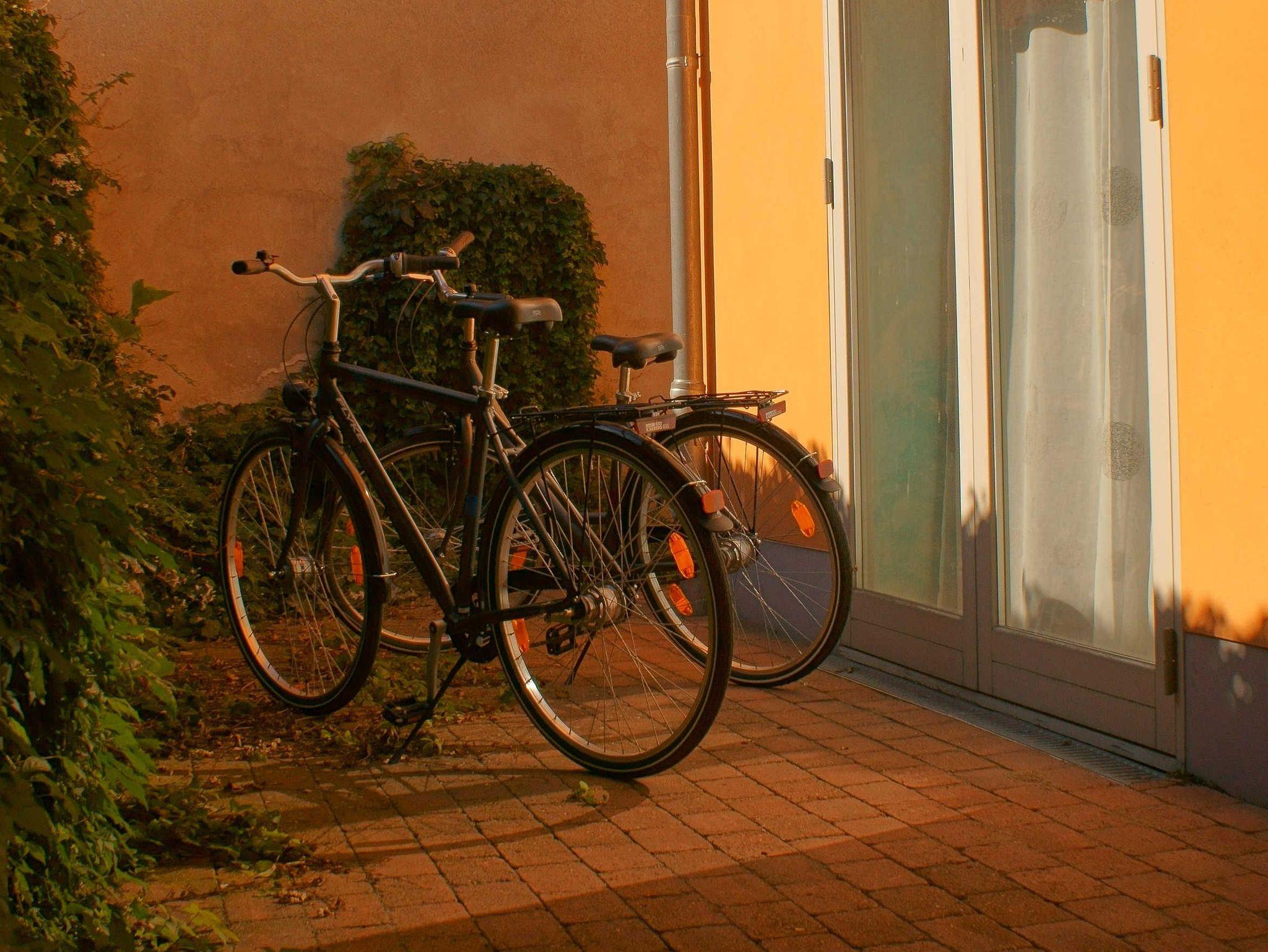 Eigene Räder können auf der überdachten Außenterrasse untergestellt werden.