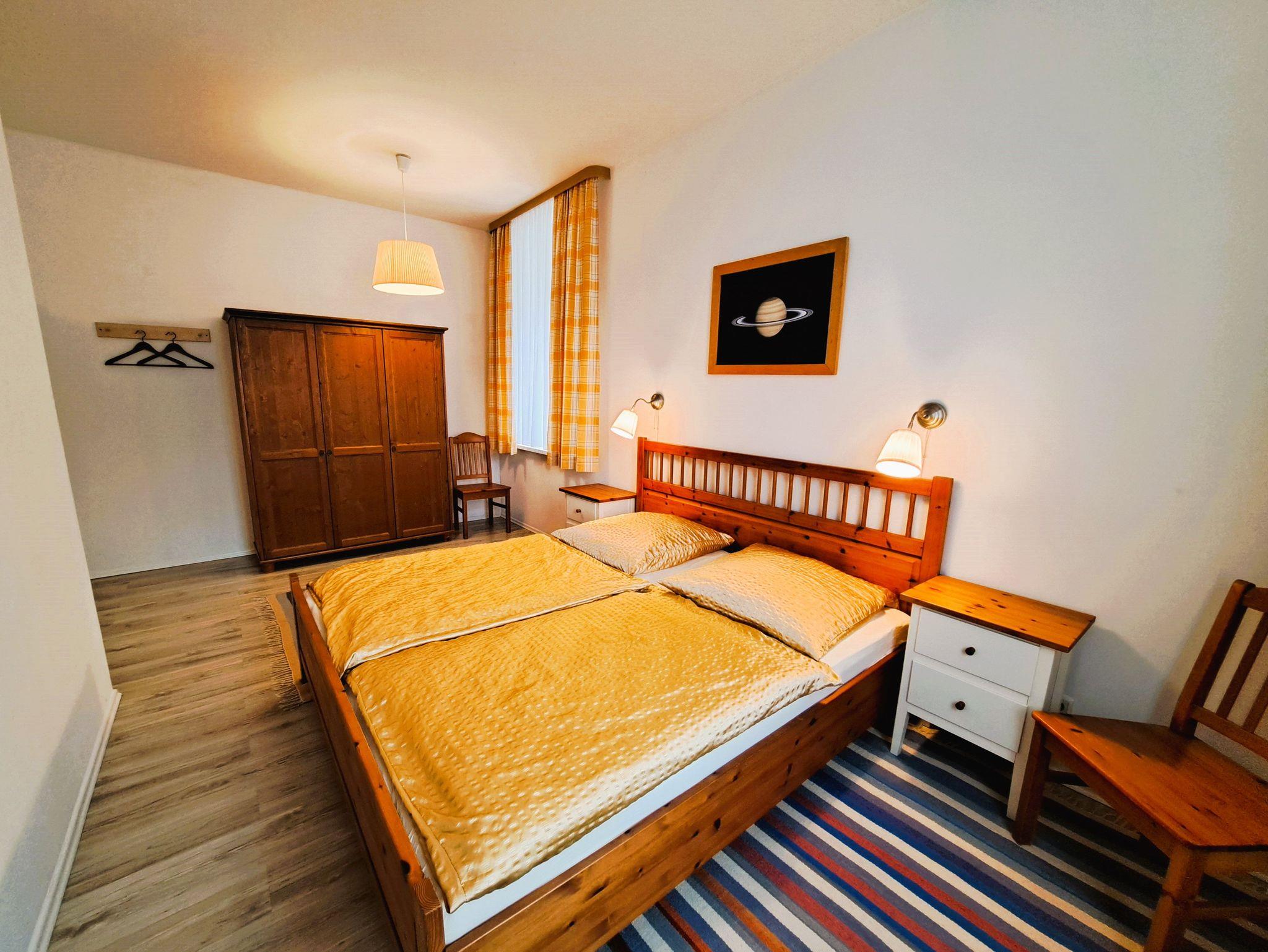 Die barrierefrei erreichbare Ferienwohnung hat eine gemütliche und moderne Ausstattung und einen Panoramablick auf den Yachthafen und die Binnenmüritz vom Wohnzimmer aus. Das Wohnzimmer ist ausgestattet mit einer Einbauküchenzeile, Esstisch, Sofa und FlachTV. Der 1. Schlafraum befindet sich auf der Hofseite mit Doppelbett und Kleiderschrank. Der 2. Schlafraum verfügt über ein Einzelbett mit 2. Rollbett (3.+4. Person). WLAN steht Ihnen kostenfrei zur Verfügung. Auf Anfrage stehen Kinderbett und Hochstuhl für Kinder bis 3 Jahren zur Verfügung (Bitte vor Anreise absprechen).