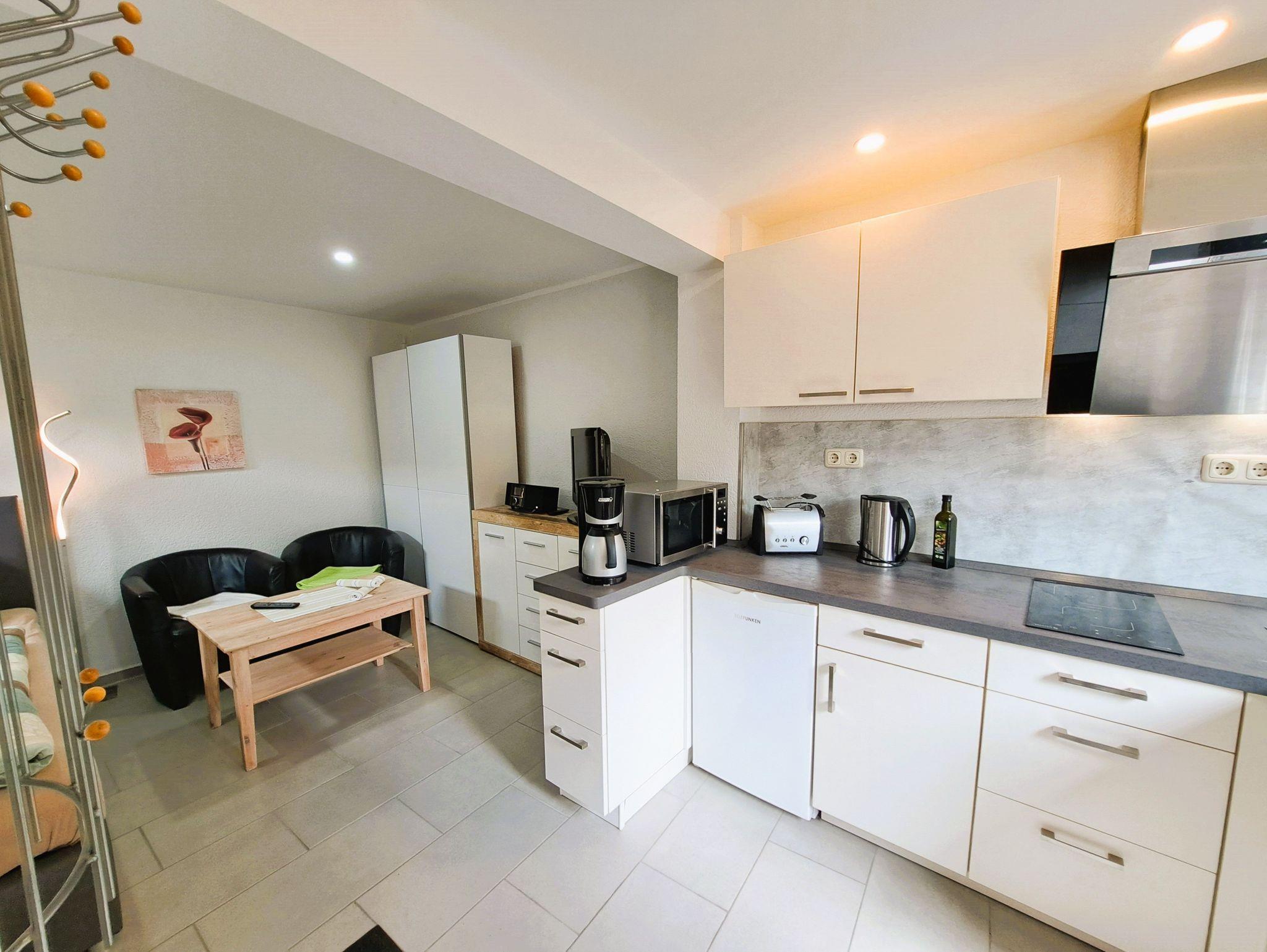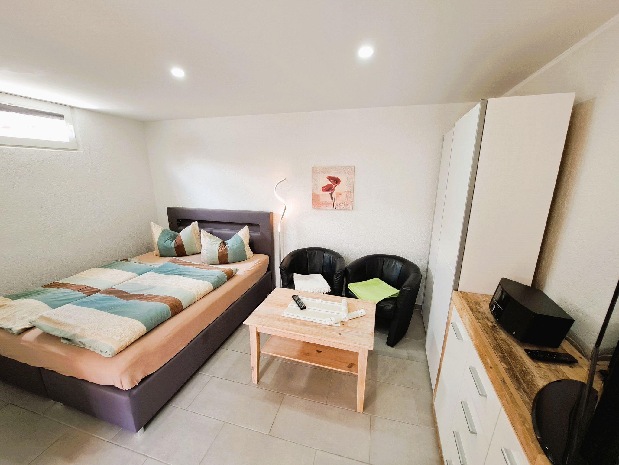 Die kleine und gemütliche Ferienwohnung befindet sich im Erdgeschoss. Im Eingangsbereich befindet sich eine kleine Küche. Der Wohn-/Schlafbereich bietet ein Doppelbett und eine kleine Sitzecke mit TV. Im Bad mit Dusche/WC befindet sich auch eine Waschmaschine. W-Lan ist in der Wohnung verfügbar.