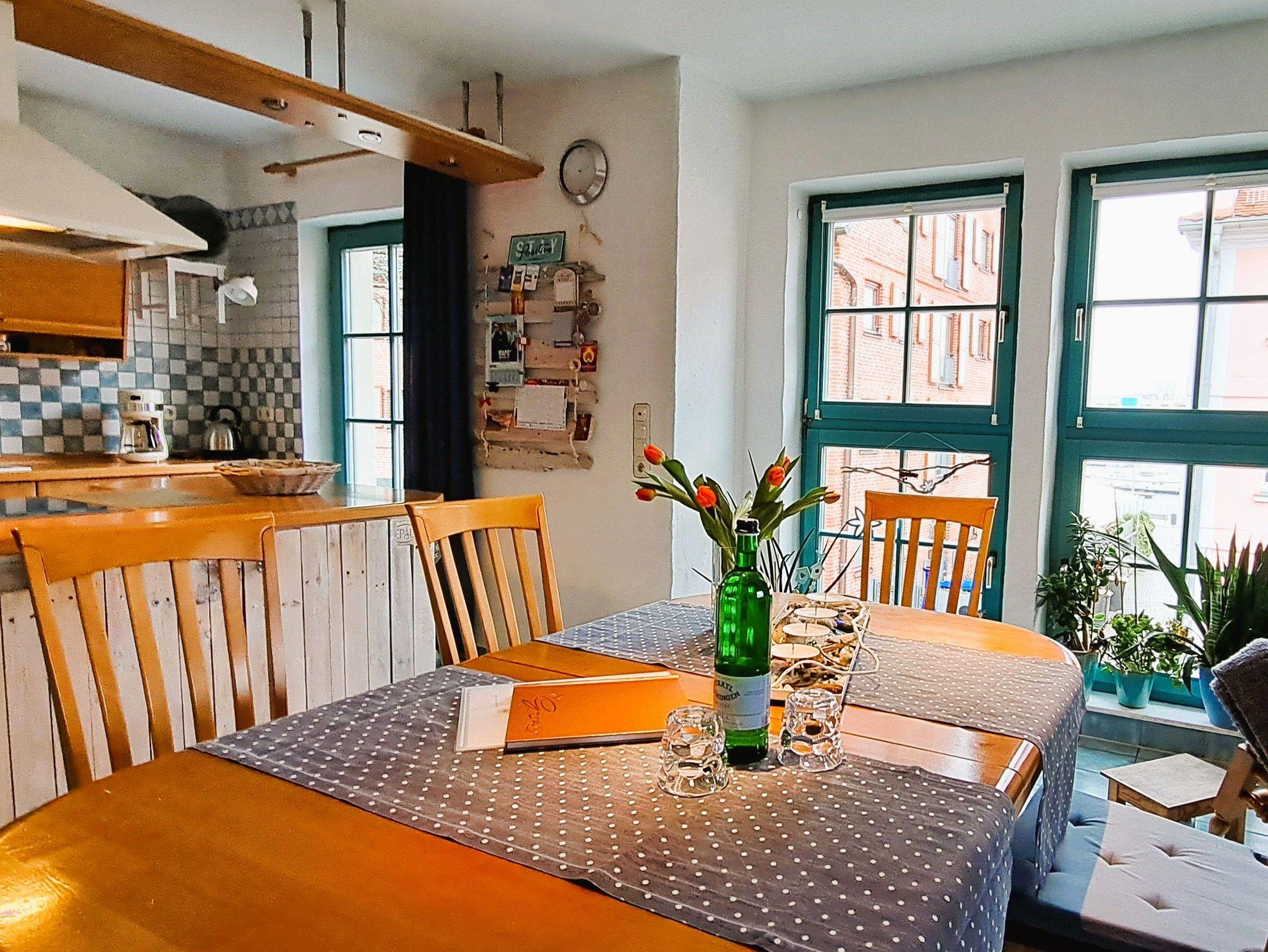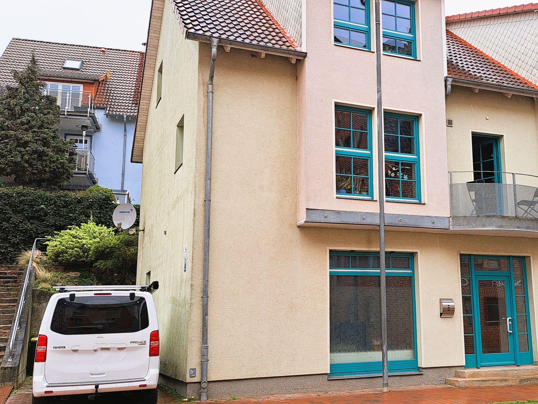 Die Ferienwohnung befindet sich direkt in der historischen Altstadt in zweiter Reihe zum Yachthafen im 1. Obergeschoss eines Mehrfamilien- und Geschäftshauses. Den Hauseingang über den Innenhof erreichen Sie über eine Treppe. Für einen PKW steht ein Parkplatz zur Verfügung. Fahrräder können auf dem PKW-Stellplatz angeschlossen werden. Ein kleiner Balkon mit eingeschänktem Hafenblick steht zur Verfügung.