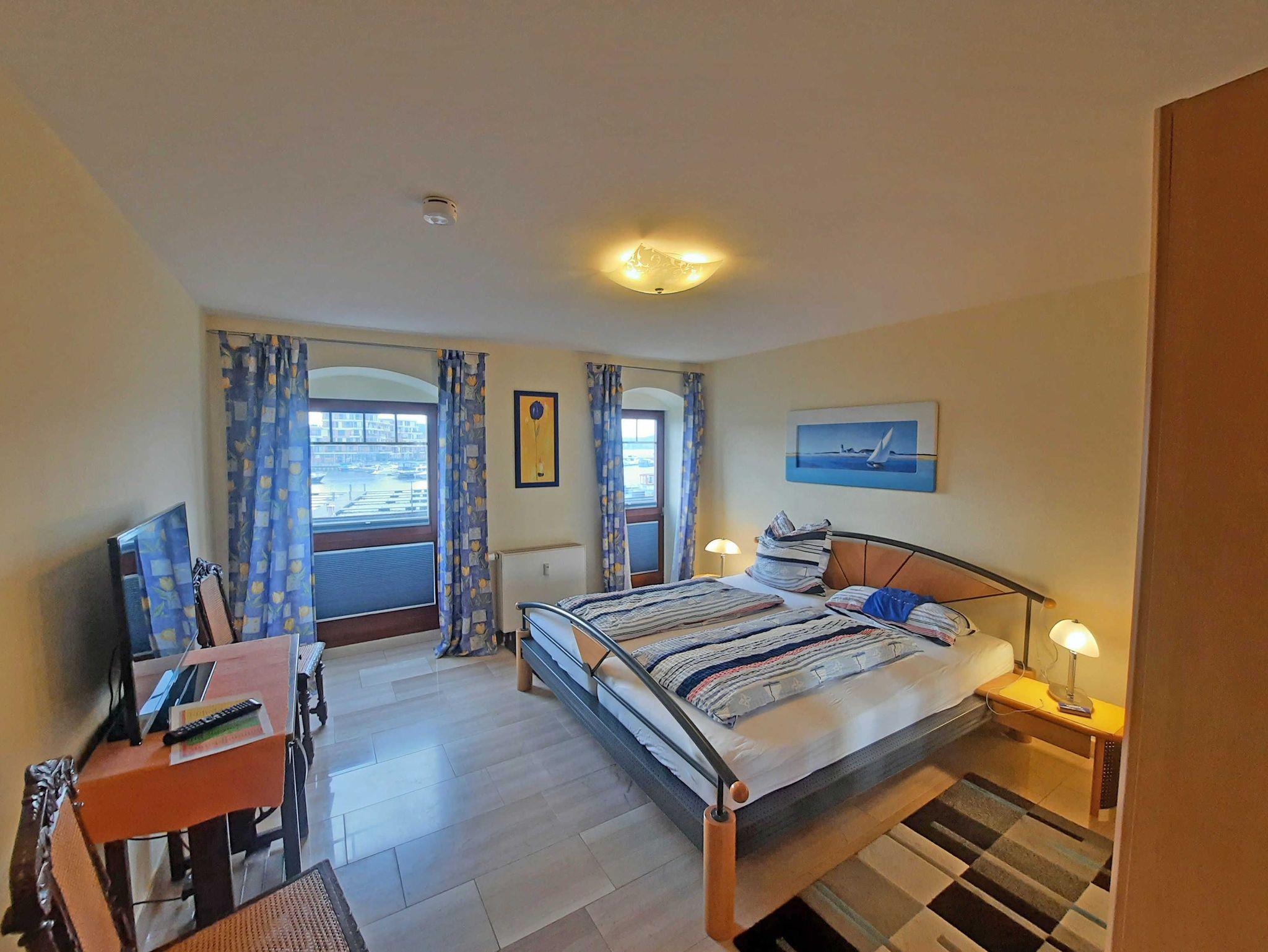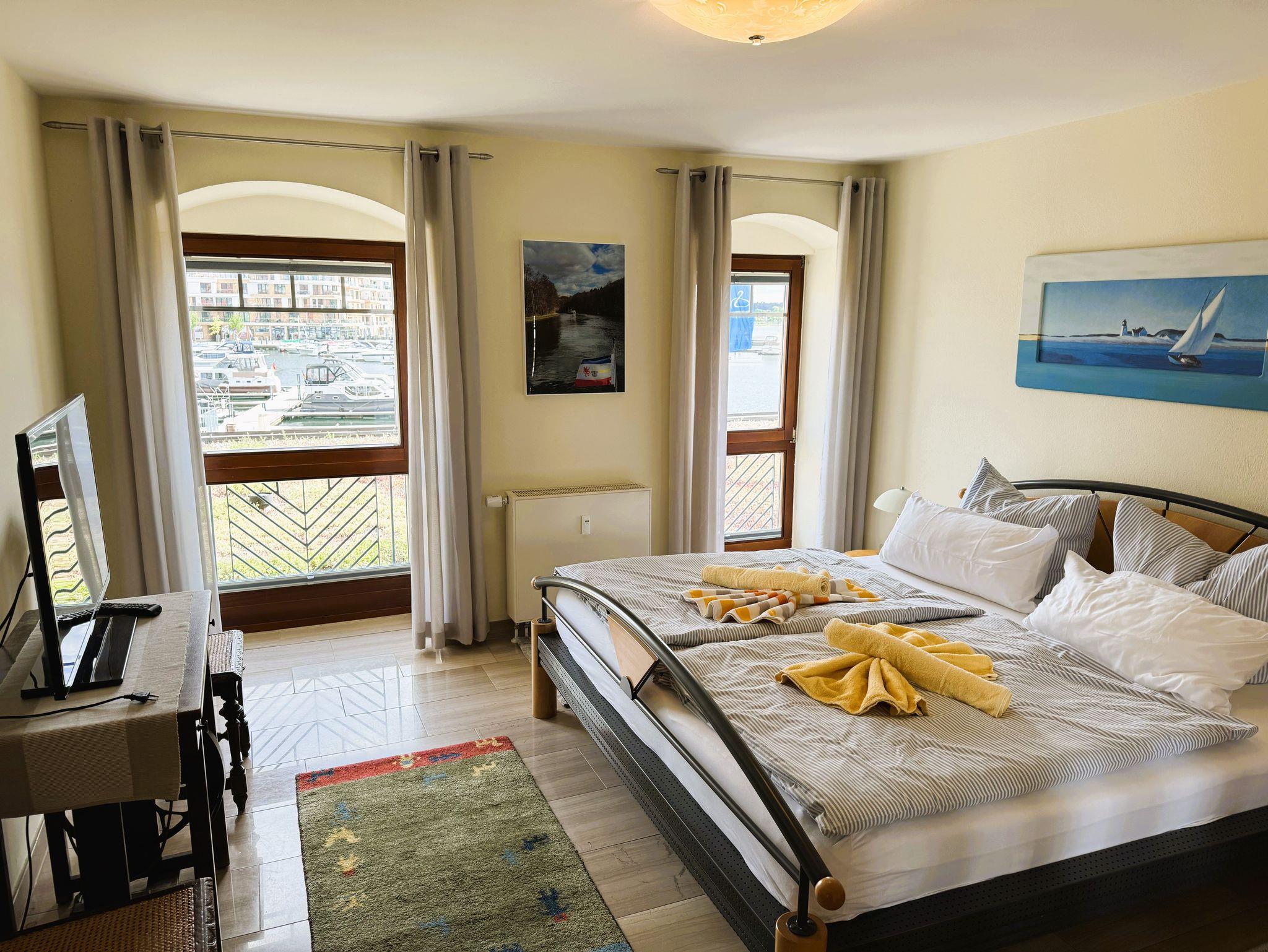 Die 75 qm große haustierfreie Ferienwohnung mit Balkon ist komfortabel ausgestattet. Beobachten Sie das rege Treiben am Hafen und genießen Sie den herrlichen Ausblick auf die Binnenmüritz Im ca. 30 qm großen Wohnraum befindet sich eine Einbauküche mit Geschirrspüler und Mikrowelle und einem separaten Essplatz sowie Couchlandschaft und TV. Im Schlafzimmer befindet sich ein Doppelbett und Stauraum. Wohnzimmer und Schlafzimmer bieten einen Blick auf den Yachthafen. Die gesamte Ferienwohnung ist mit Marmorfußböden sowie einem hochwertigen Mobiliar ausgestattet.