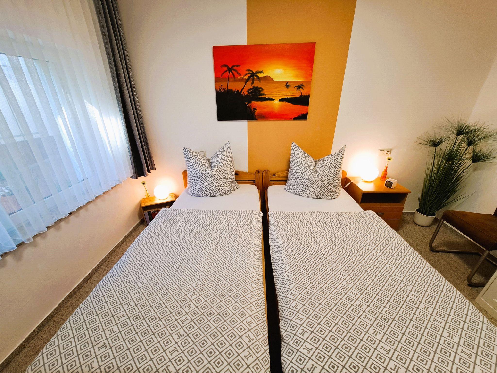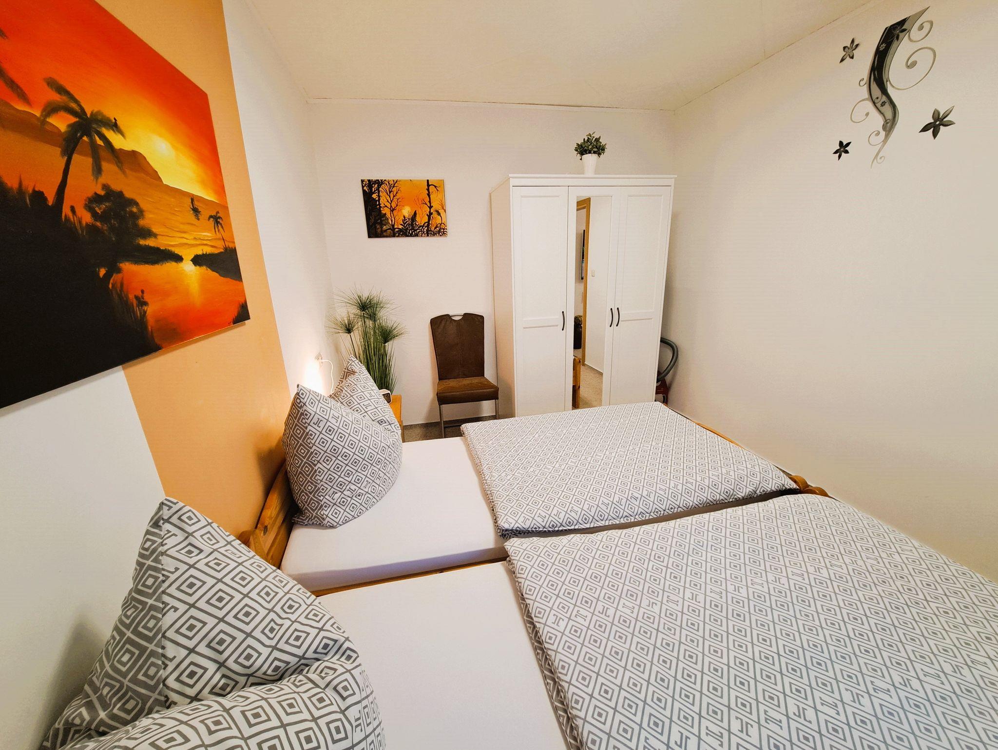Im Schlafzimmer sorgt ein großes Doppelbett für erholsame Nächte, während ein geräumiger Kleiderschrank genügend Platz für Ihre Garderobe bietet. Bettwäsche und Handtücher sind bei Ihrer Ankunft als Erstausstattung bereits inklusive ? für einen sorglosen Start in Ihren Aufenthalt.