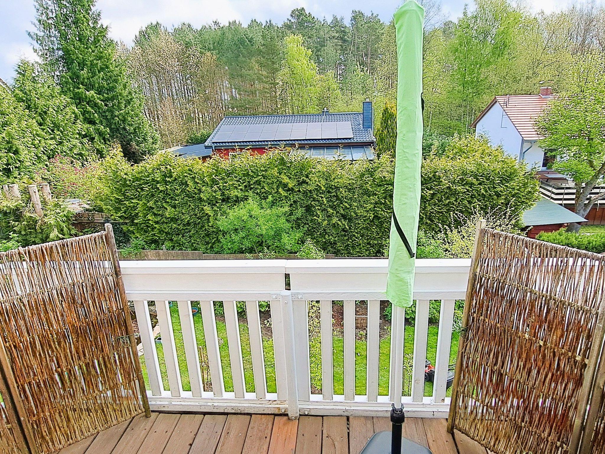 Die Ferienwohnung befindet sich im Haus des Vermieters, im Stadtteil Ecktannen und direkt am Müritz-Nationalpark. Genießen Sie den Blick vom Balkon auf Landschaft, Nationalpark und Natur. Ruhe und Natur pur.