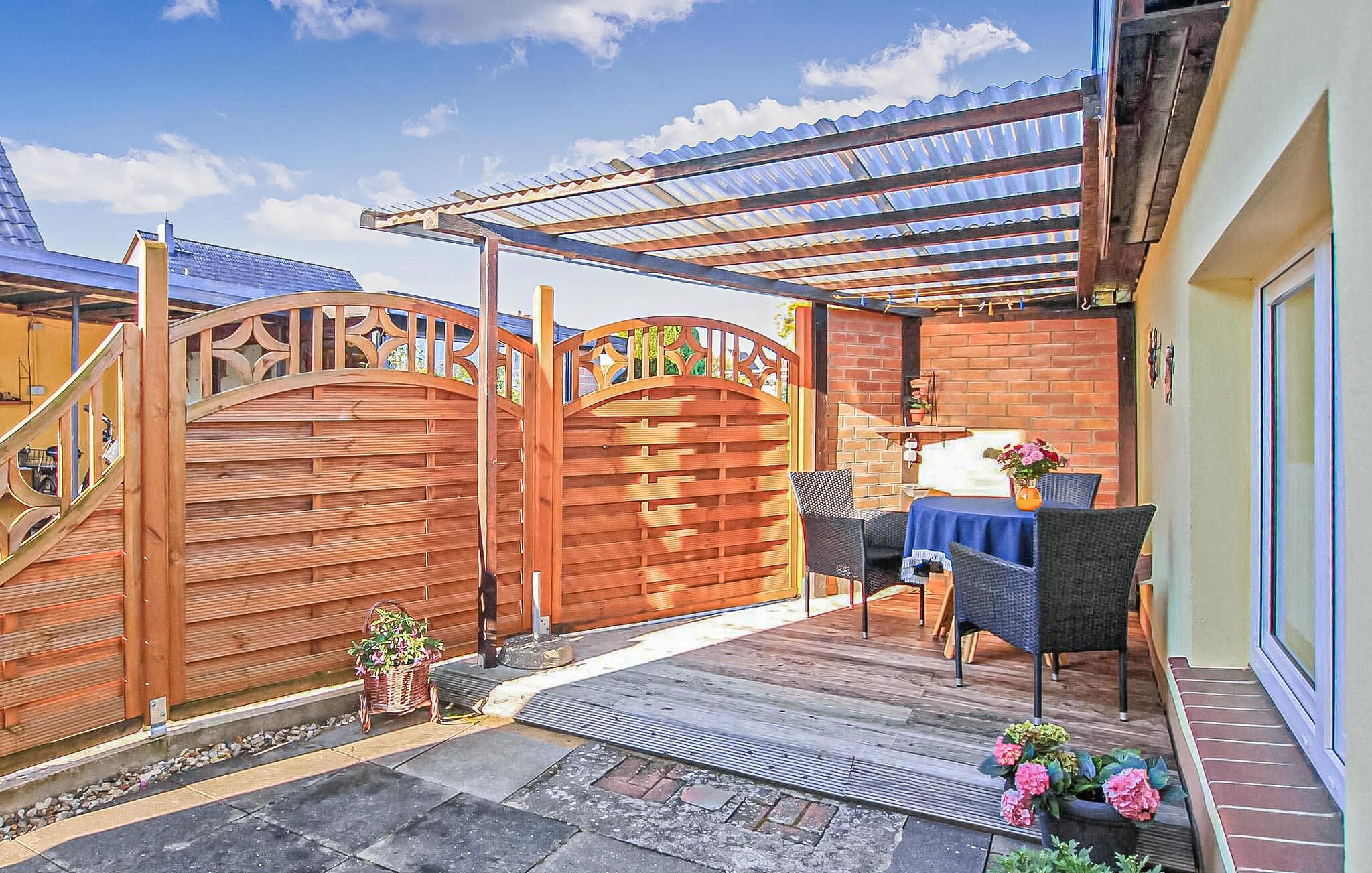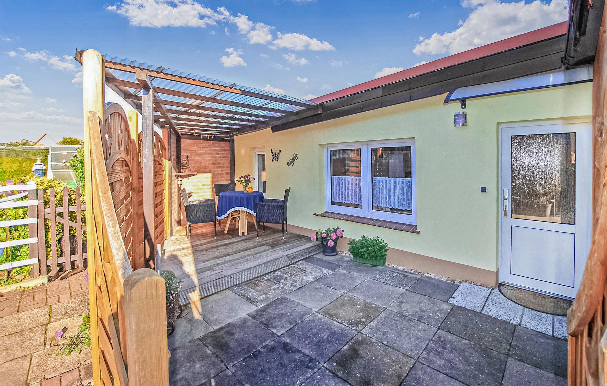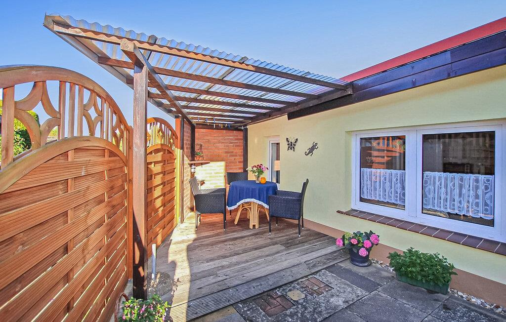 Det lille feriehus er beliggende separat på ejerens 1000 kvadratmeter store boligejendom i et roligt villakvarter. Der er ca. 800 meter til den kommunale swimmingpool på Müritz. Butikker og restauranter inden for ca. 500 m. Feriehuset ligger ca. enkelt udstyret med: Stue (polstrede møbler, opholdsområde, fladskærms-tv), soveværelse (2 enkeltsenge, polstret liggestol), åbent tekøkken (miniovn med kogeplader, køleskab, diverse køkkenmaskiner), badeværelse (moderniseret) med bruser /WC, WiFi, centralvarme Tilgængelig: overdækket, møbleret og lukket terrasse, grill, to cykler, cykelrum, parkeringsplads og opladningsmulighed (CEE 16) til elbiler (mod betaling). energi og slutrengøring er inkluderet i den samlede pris. Betales: turistskat, hvis relevant: el til opladning af elbiler.