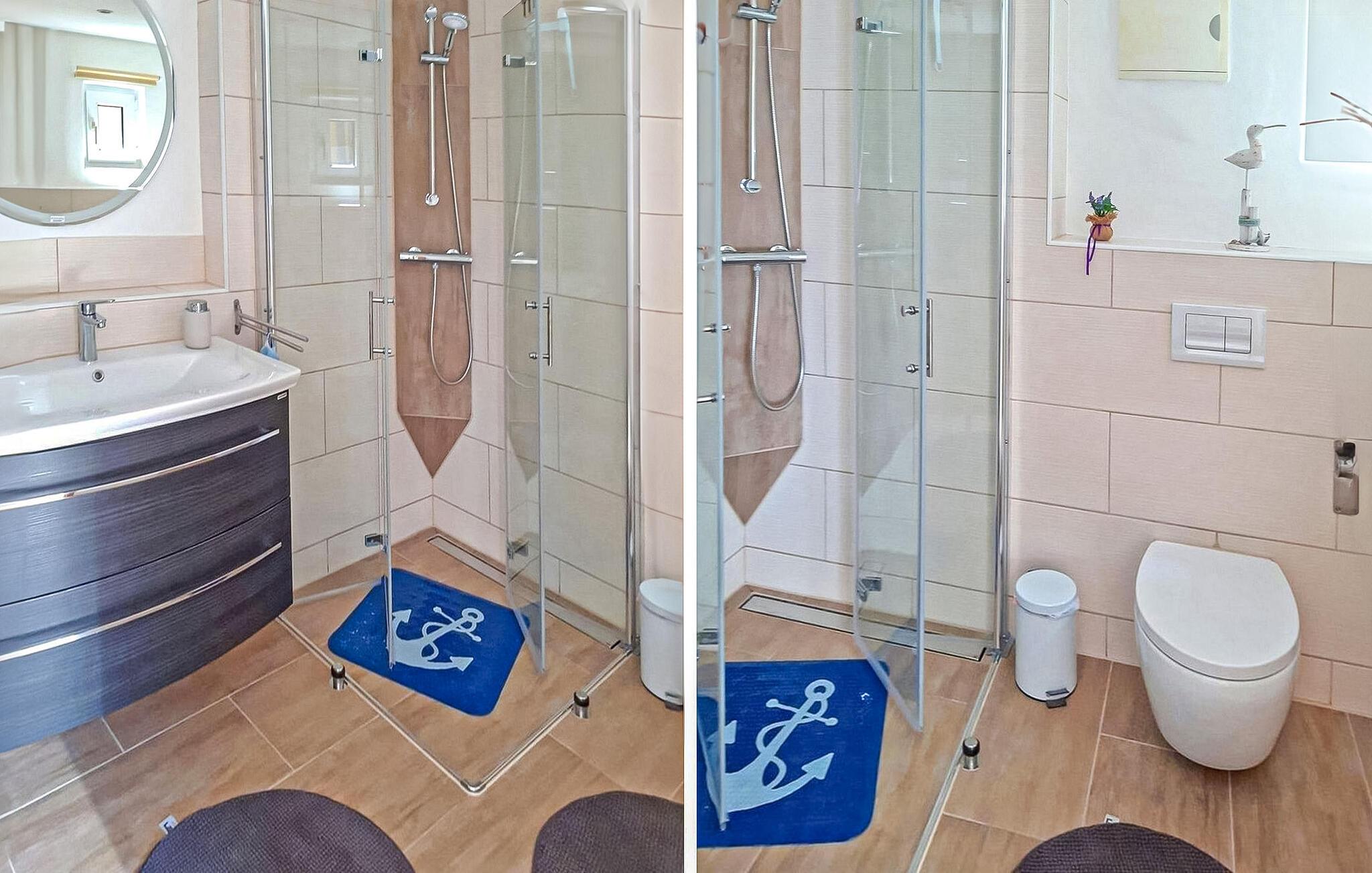 Badeværelse (nr. 1) - WC. Varmt og koldt vand. Bruser