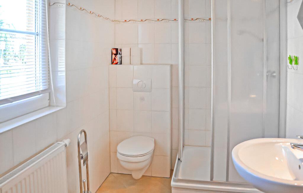 Det cirka 65 kvadratmeter store sommerhus (1 halvdel af huset) har plads til op til 4 personer (inklusive 1 lille barn op til max 2 år) og er beliggende på ejerens cirka 1300 kvadratmeter og fuldt indhegnede grund i den rolige udkant af Waren (Müritz). En restaurant og et svømmeområde ved Tiefwarensee ligger omkring 500 meter derfra. Nærmeste butik ligger ca. 2 km væk Sommerhuset er nybygget i 2013 og har separat adgang. Den strækker sig over to etager og er på nederste plan udstyret med opholdsstue med polstrede møbler og 1 lænestol, fladskærms-tv, radio og dvd-afspiller og udgang til terrassen samt separat køkken med el-komfur med ovn, mikroovn. , køleskab med fryserum, diverse små køkkenmaskiner og opholdsområde samt badeværelse med bruser, toilet og hårtørrer. De to soveværelser er på øverste etage. Der er 1 værelse med dobbeltseng og et værelse med 2 enkeltsenge. Huset er udstyret med centralvarme og insektbeskyttelse foran soveværelsesvinduerne. Findes også: møbleret terrasse med grill, cykelkælder, 2 parkeringspladser. Rygning er kun tilladt udendørs Den samlede pris inkluderer sengelinned, håndklæder, vand og energiforbrug. Betales på stedet: turistskat.