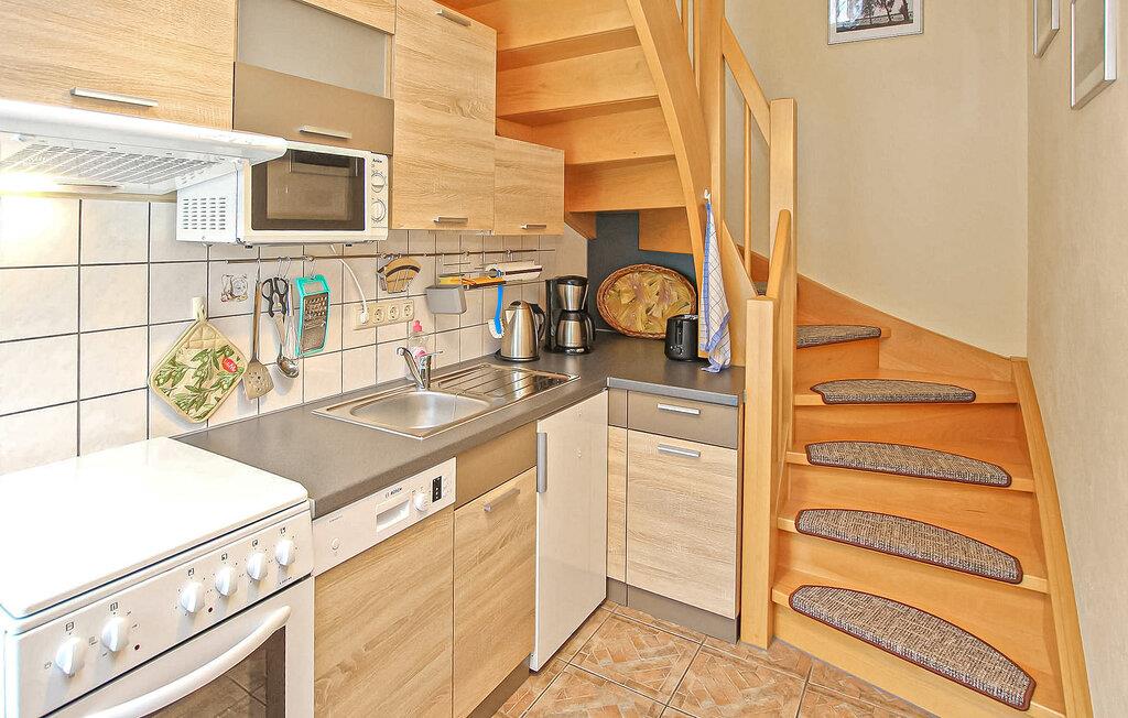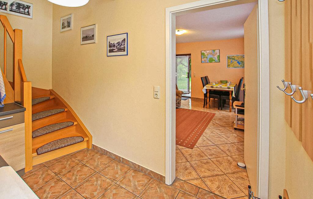 Kun få skridt væk fra promenaden ved Müritz og et lille badeområde, i et populært boligområde, er der to ferielejligheder til 6 og 4 personer på en stor beboelsesejendom på øverste etage af en byvilla og et tilstødende udhus . Havnen og den gamle bydel i Waren med et udvalg af indkøbsmuligheder og restauranter ligger inden for gåafstand. Den centralt opvarmede ikke-ryger lejlighed har en parkeringsplads, et aflåseligt cykelrum, en grill og gratis WiFi. Denne cirka 65 kvm store lejlighed for op til 4 personer ligger i et separat anneks, kan tilgås via to indgange (1 x køkken, 1 x stue) og strækker sig over 2 etager. Stueetagen har gulvvarme, her er stuen (sovesofa, spisebord, fladskærms TV, radio/cd) og køkkenet (elkomfur med ovn, køleskab med fryser, mikroovn, opvaskemaskine, diverse små køkkenmaskiner) . Soveværelset (dobbeltseng, udtræksseng) og badeværelset (bruser, badekar, vaskemaskine) på øverste etage kan nås via trapper. Lejligheden har en møbleret, overdækket terrasse med udsigt til den store have. Den samlede pris inkluderer slutrengøring, sengelinned, håndklæder, vand og el. Betales på stedet: spaskat. Kæledyr er ikke tilladt i denne ejendom. Det statsanerkendte kurbad Waren (Müritz) ligger i charmerende omgivelser direkte ved søen af samme navn, den største indsø i Tyskland. Det er også turistcentret i Mecklenburg Lake District.Attraktioner omfatter den historiske gamle bydel, havnen med passagerskibe, den tilstødende promenade og talrige spisemuligheder samt Müritzeum, et naturoplevelsescenter med et kæmpe ferskvandsakvarium og udstillinger om bl.a. flora og fauna i sødistriktet.I landsbyen er der også udendørs swimmingpools, båd- og cykeludlejning, surf- og sejlerskoler og mange indkøbsmuligheder. Waren er indgangsporten til Müritz Nationalpark, som nemt kan udforskes via det veludviklede cykelstinetværk (også i kombination med passagerbåden). Motorvejsforbindelse ca 25 km.