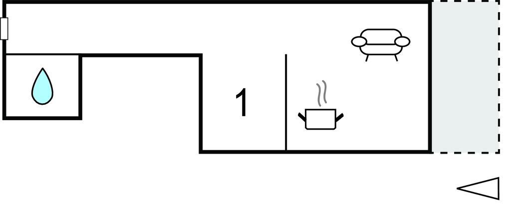 Feriehuset har kombineret stue/soveværelse (polstrede møbler, smart-tv med streamingtilbud, soveplads med dobbeltseng), åbent tekøkken (induktionskomfur, køleskab med fryser, mikroovn, opvaskemaskine, miniovn, diverse små køkkenmaskiner ) og et badeværelse med bruser/toilet og hårtørrer. Boligen opvarmes med gulvvarme. Wi-Fi er også tilgængeligt. Der er en møbleret terrasse med udsigt over søen, en grill og en parkeringsplads.