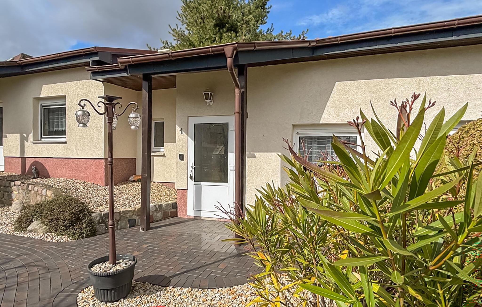 Udenfor kan I nyde de rolige omgivelser i den velholdte have. Sid på den lille terrasse og tilbring afslappende timer udendørs. Udsigten over de tilstødende marker formidler en følelse af vidstrakthed og forbindelse til naturen. Spis morgenmad under åben himmel eller tag en kort pause om eftermiddagen. Hækkene sikrer privatliv.