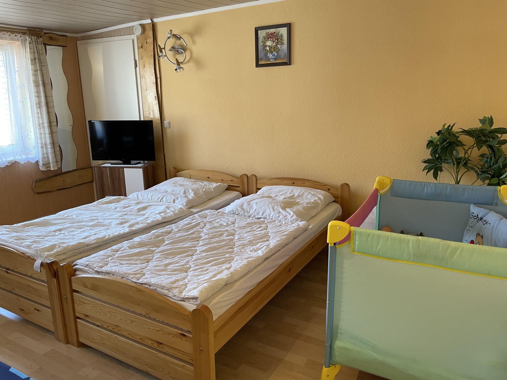 "Old Hüsung (MUZ321)", 3-room apartment 62 m2 on 1st floor. Practical and cosy furnishings: small living/dining room with cable TV and radio. 1 room with 1 double bed and dining table. 1 room with 2 beds. Small kitchen (4 hot plates, oven, microwave, grill, electric coffee machine). Bath/WC, shower/WC. Electric heating. Facilities: children's high chair, baby cot. Please note: non-smokers only. Maximum 2 pets/ dogs allowed. Smoke alarm.