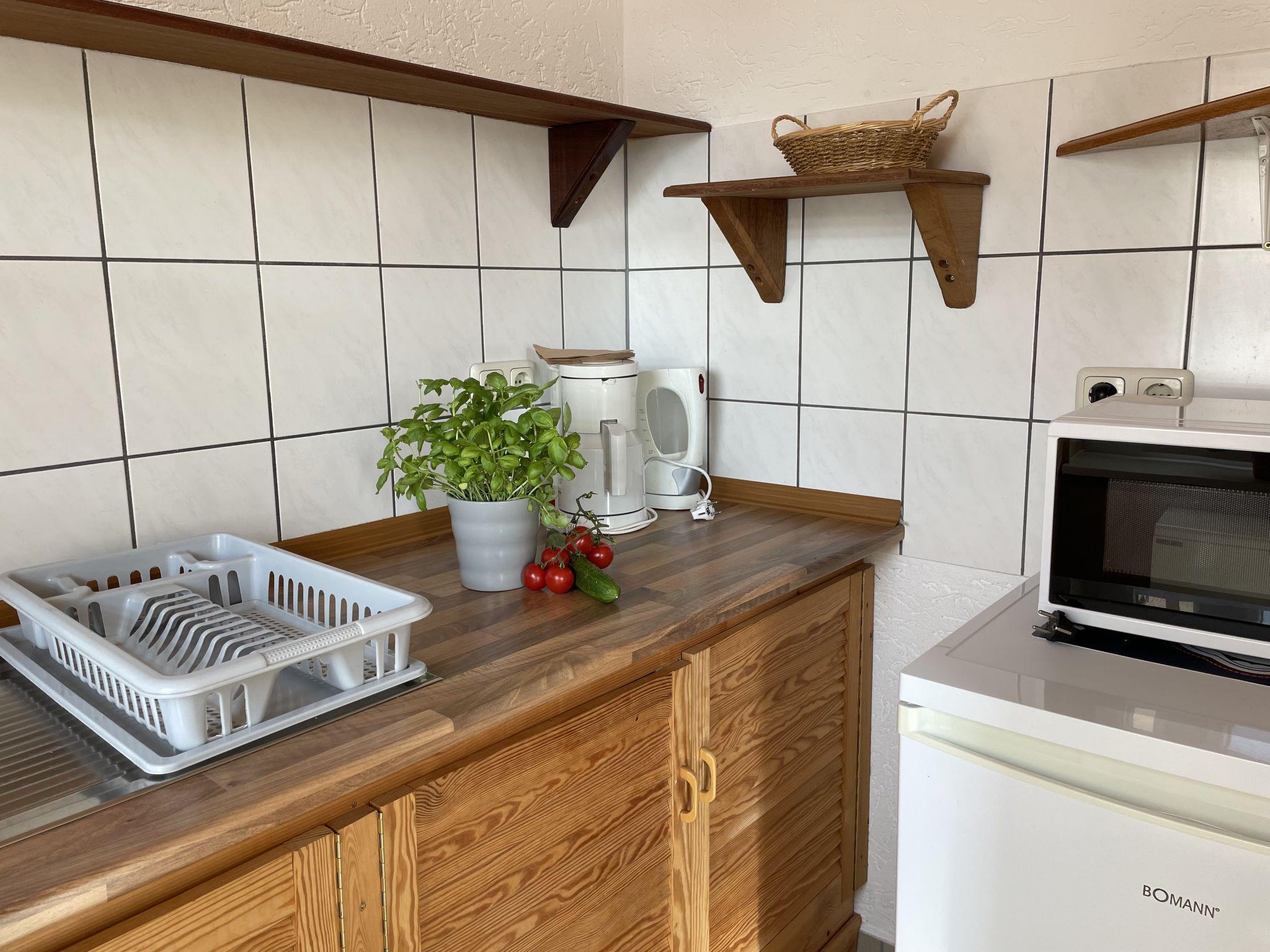 "Old Hüsung (MUZ323)", 2-room apartment 40 m2, on the upper ground floor. Practical and cosy furnishings: living/sleeping room with 1 sofabed, dining table, cable TV and radio. 1 double bedroom. Small, open kitchen (4 hot plates, oven, microwave, electric coffee machine). Shower/WC. Electric heating. Facilities: children's high chair, baby cot. Please note: non-smokers only. Maximum 2 pets/ dogs allowed. Smoke alarm.