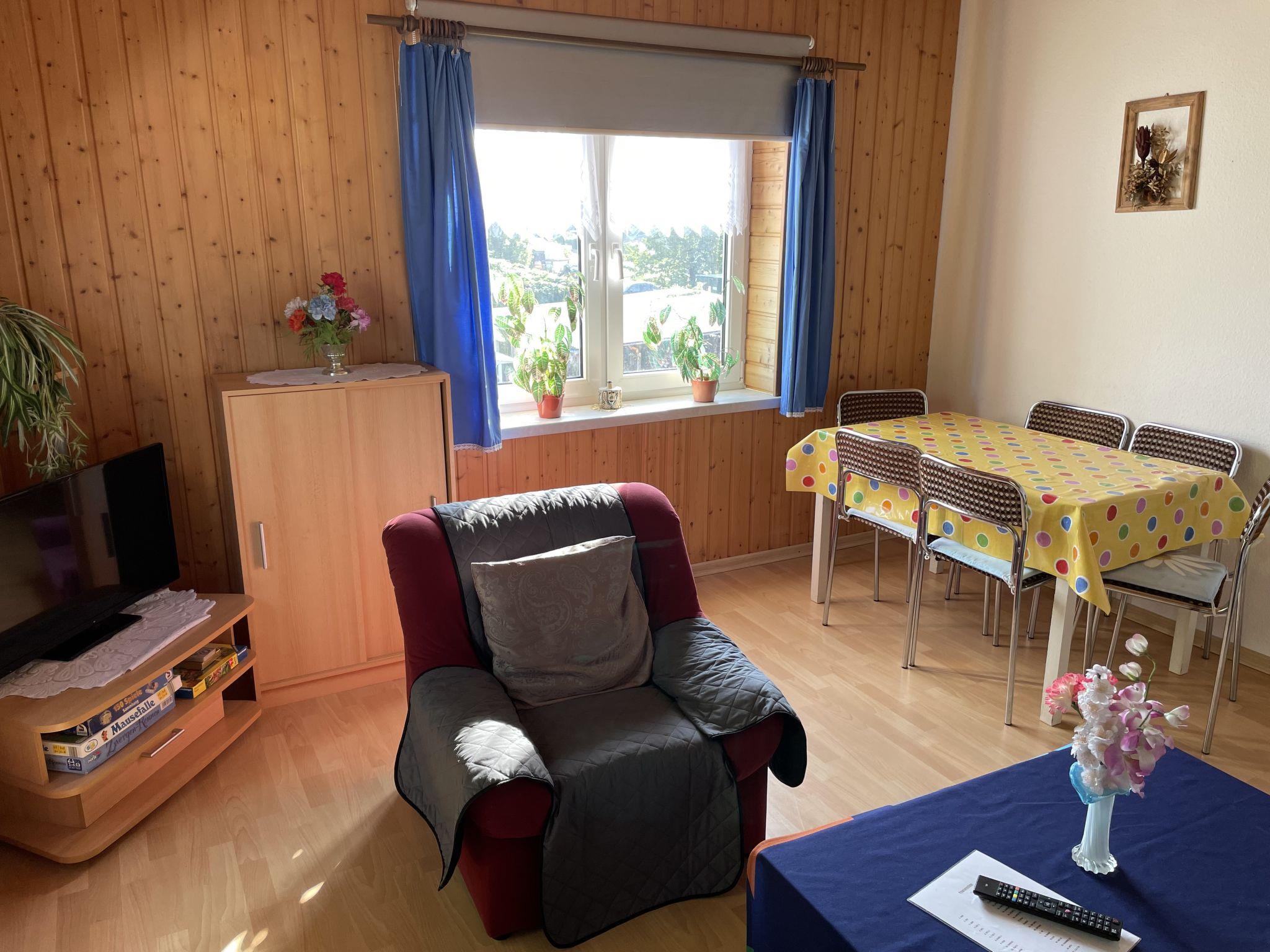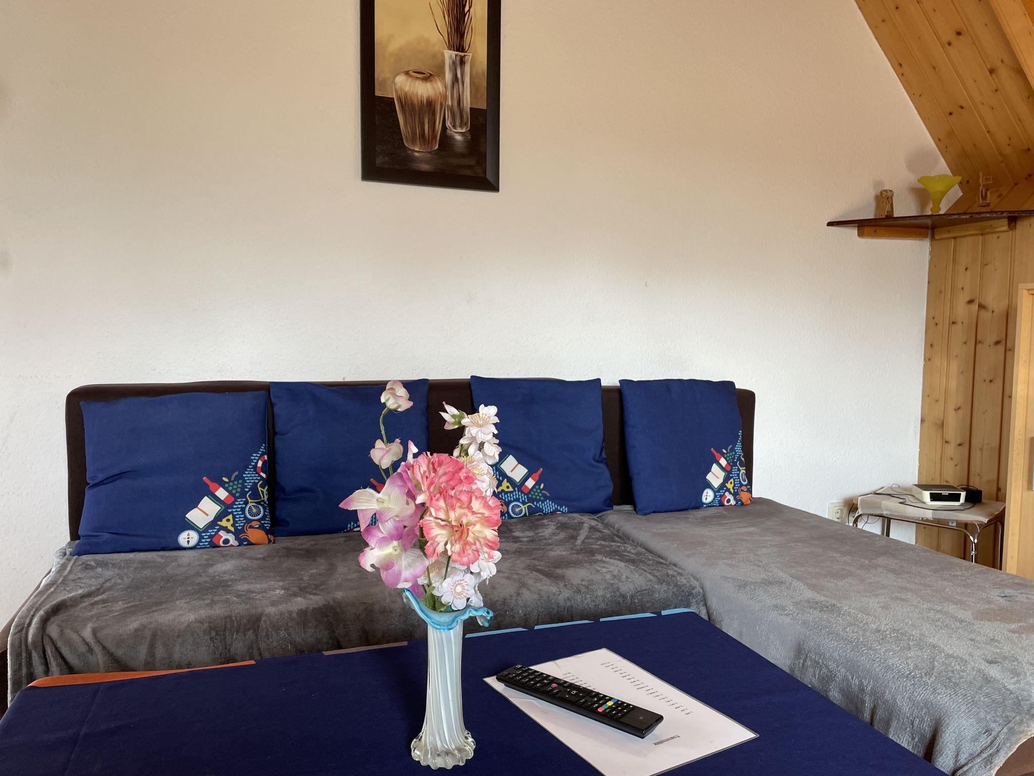 "Old Hüsung (MUZ328)", 2-room apartment 50 m2 on 2 levels. Practical and wooden furniture furnishings: 2nd upper floor: (exterior staircase) living/dining room with sloping ceilings with cable TV. Walk-through room with 1 double bed. Kitchen (4 hot plates, oven, toaster, kettle, microwave, electric coffee machine). Top floor: (steep stair), 1 open small room with sloping ceilings with 4 beds. Shower/WC. Electric heating. Carpet. Box-room. Facilities: children's high chair, baby cot. Please note: non-smokers only. Maximum 2 pets/ dogs allowed. Smoke alarm.