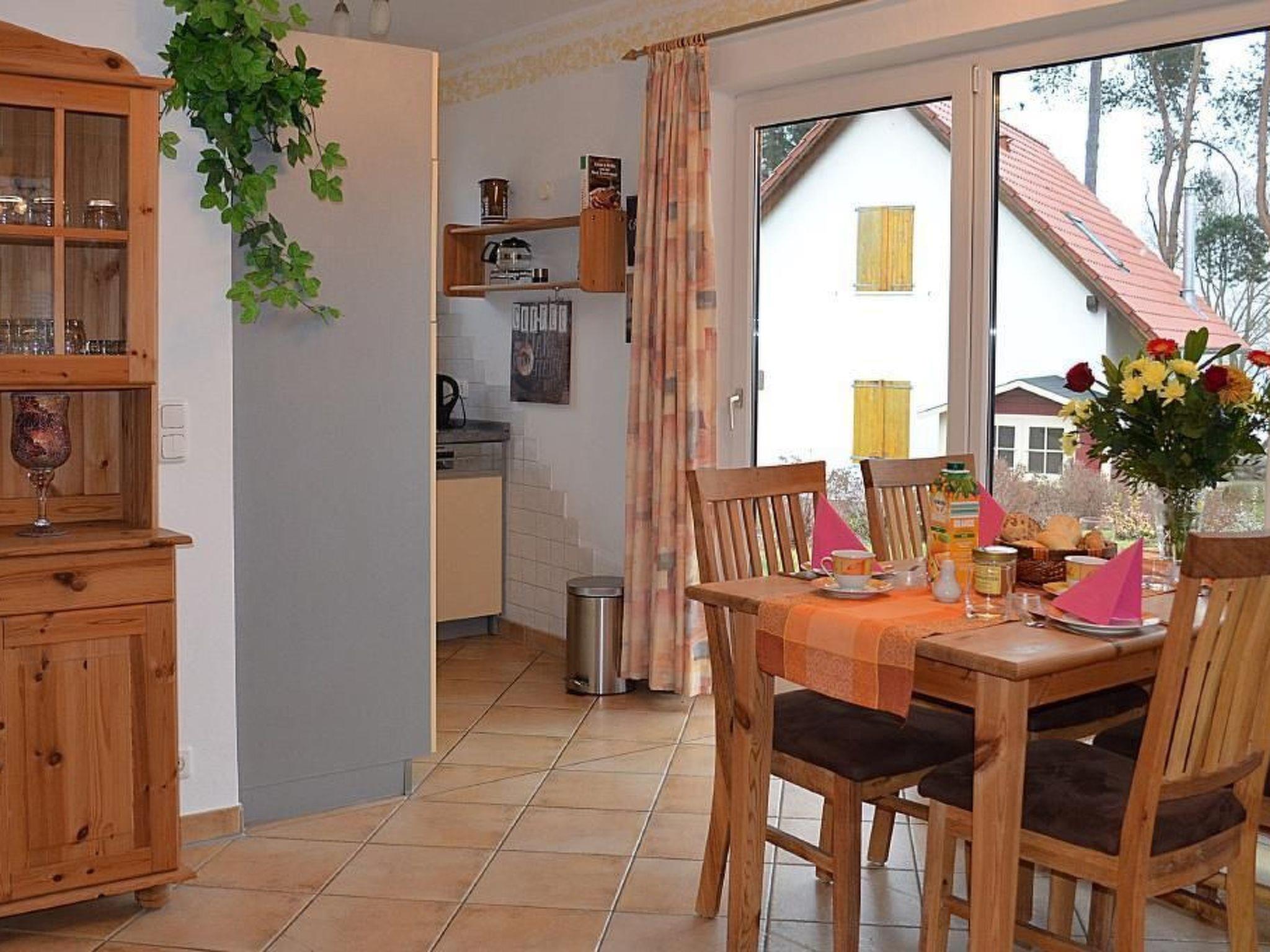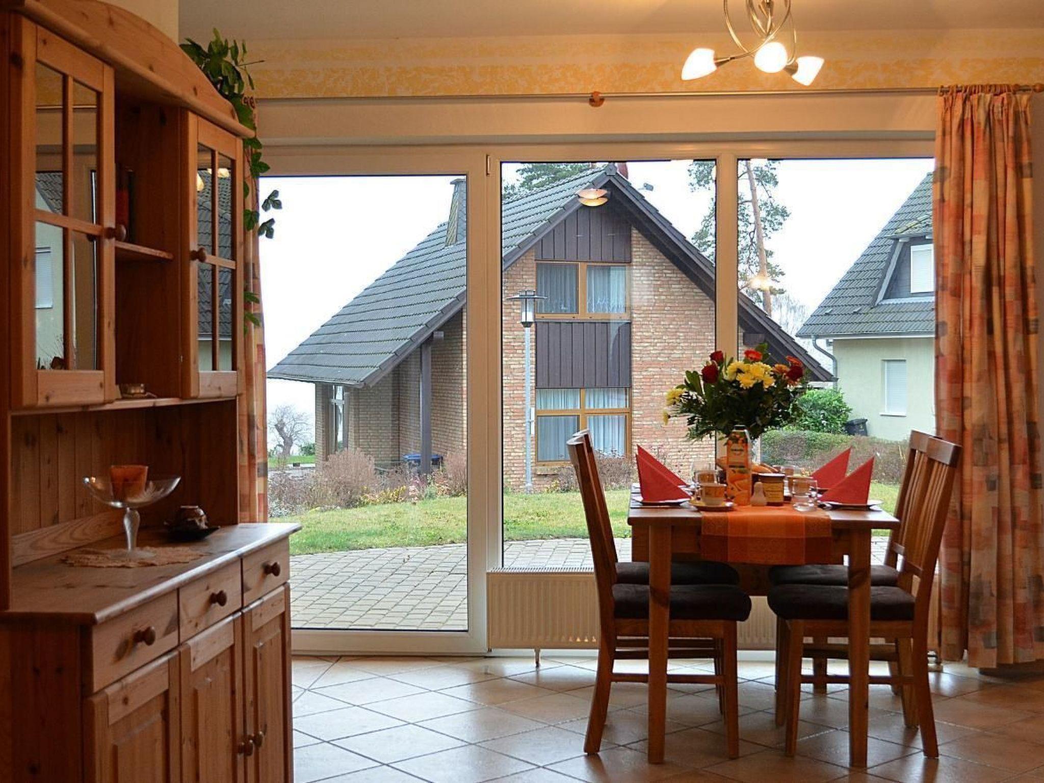 Your holiday home stands on a 400 m² plot and is only 100 metres away from a sunbathing lawn with beach. Of course, there is also a fishing jetty 150 metres from the holiday home for anglers. From the spacious terrace you can enjoy the marvellous lake view of the Müritz and watch the sailors, boaters and surfers. The 65 m² holiday flat with 2 bedrooms is suitable for 2 to 4 people. Living and dining room with sofa and couch, from the couch you have a view of the Müritz. Satellite TV, hi-fi mini system, high-quality kitchenette with fridge/freezer, oven with 4 ceramic hobs, extractor bonnet, coffee machine, toaster, kettle, egg cooker, 12 x crockery. One bedroom with double bed and a second bedroom with bunk bed, shower/WC, terrace with seating and lake view, car parking space directly at the house.