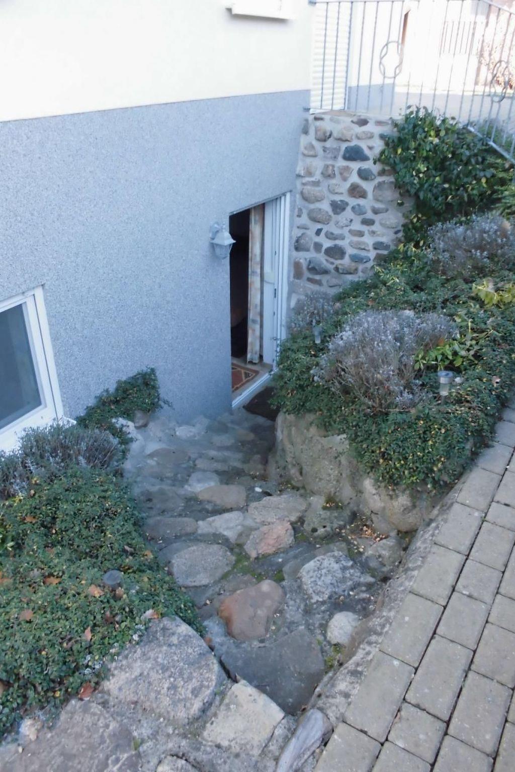 The basement flat for 1-3 people is half above ground level and has open, unobstructed windows.Living and dining room with a sofa bed (150 x 200) for 2 people, 2 armchairs, 2 stools, wardrobe with mirror, desk, patio door, satellite TV, radio with CD, high-quality kitchenette, fridge/freezer, 2 ceramic hobs, coffee machine, toaster, kettle, crockery, dishwasher, microwave, dining table 140 x 80 and 4 chairs, bedroom with double bed (160 x 200), shower/WC, terrace with seating, car parking space directly at the house.