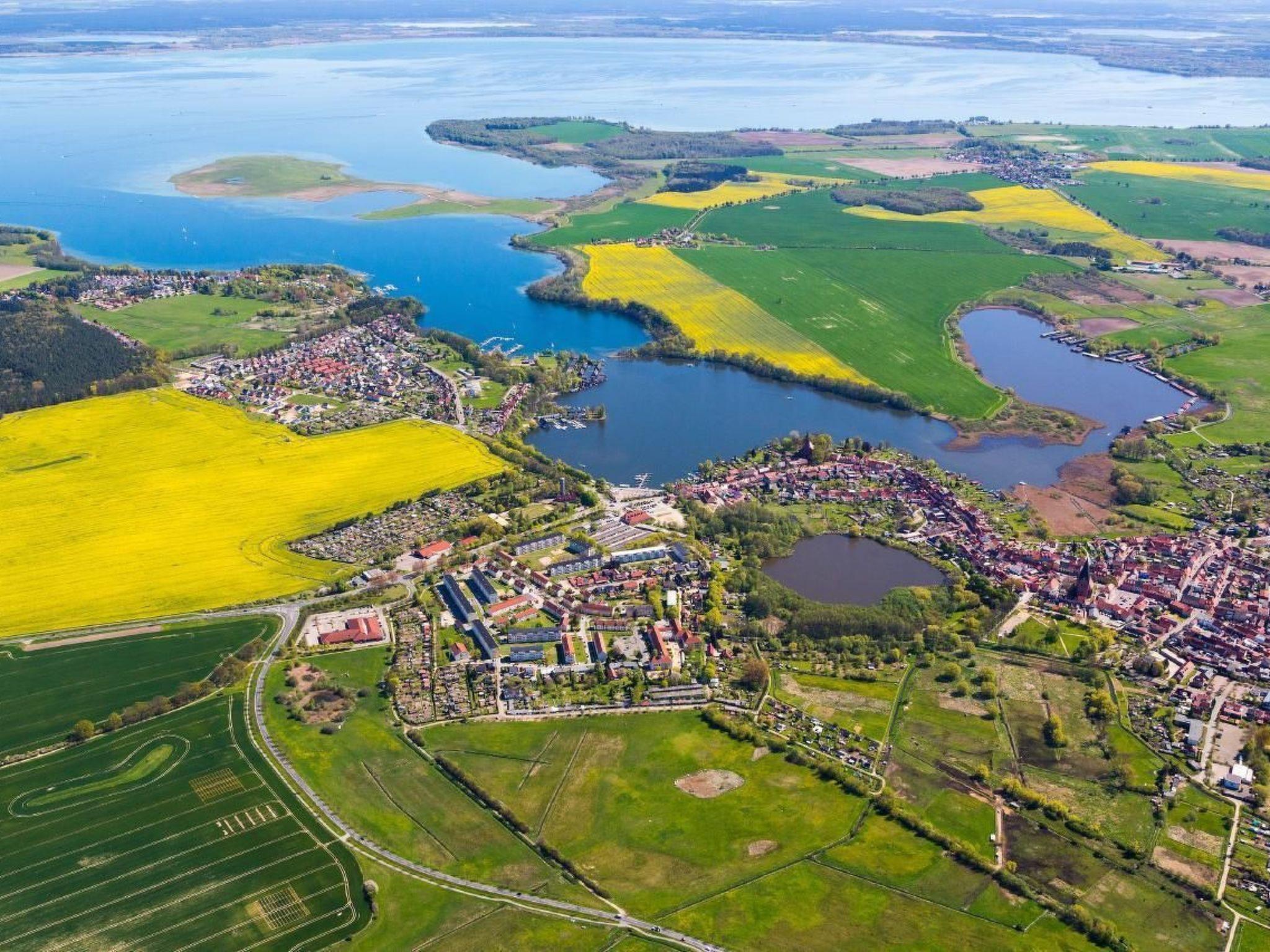 Location description : Röbel / Müritz is a lively small town with 5313 inhabitants (as of 2007). It lies in the Müritz district, the heart of the Mecklenburg Lake District, at an altitude of 65 metres above sea level and nestles idyllically on the south-west bank of the Müritz. After the political change in 1991, the historic town centre with the town hall was thoroughly renovated as part of the urban development programme, and the townscape of this colourful half-timbered town has changed considerably since then. The town has a railway connection, but it has been closed down. The nearest railway connection is approx. 24 km away in Waren. Röbel is connected to all federal waterways via the Müritz. There is a well-developed town harbour, which is used by various passenger shipping companies. The most important employer today is optimal media production, a service company in the media industry with more than 500 employees. Since 1994, Röbel has been part of the district of Müritz in the federal state of Mecklenburg-Vorpommern. The inland Müritz, with its small colourful harbour and its uniquely beautiful, completely renovated waterfront promenade, leaves a lasting impression on every visitor. Visitors to the town are greeted by two mighty early Gothic brick churches. This initially unusual sight for such a small town has a special history. Before Röbel was granted its town charter in 1261, it consisted of two separate settlements, the old town and the new town. The old town belonged to the diocese of Schwerin, the new town to the diocese of Havelberg. As a result, a church was built in each of the two episcopal areas. The favourable climatic conditions, the natural surroundings rich in forests and lakes and the wide range of leisure activities on offer provide visitors with a broad spectrum of active and passive recreational opportunities all year round.Land of a Thousand Lakes with the Müritz at its centreThe Müritz forms the largest contiguous lake landscape in Europe, with the Müritz at its centre. At 117 km², it is Germany's largest inland lake. There are over 2033 lakes in Mecklenburg-Vorpommern with a total area of 738 km². The Müritz alone accounts for 16% of this with a size of 117 km². But the other lakes in the Mecklenburg Lake District do not need to hide behind this inland sea either. Lake Plau is only slightly smaller at 38 km², Lake Kummerow at 33 km² and Lake Kölpin at 21 km². The Müritz is surrounded by many small and medium-sized towns. The most important of these are Waren, Röbel, Klink, Mirow, Boek, Rechlin and Sietow. All these places are connected by the "Müritz cycle path". The Mecklenburg Lake District is an Eldorado for water hiking. Canoeing or rafting, sailing, surfing, diving, water skiing, cruising the lakes on a houseboat or motor yacht - everything is possible. Swimming with or without, on quiet and romantic lakes, unspoilt beaches or bathing beaches with a wide range of leisure activities, there is something for everyone. Fully equipped marinas and romantic harbours await your visit on the lakes. The glittering waterways of the Mecklenburg Lake District lead directly to Berlin or Hamburg.