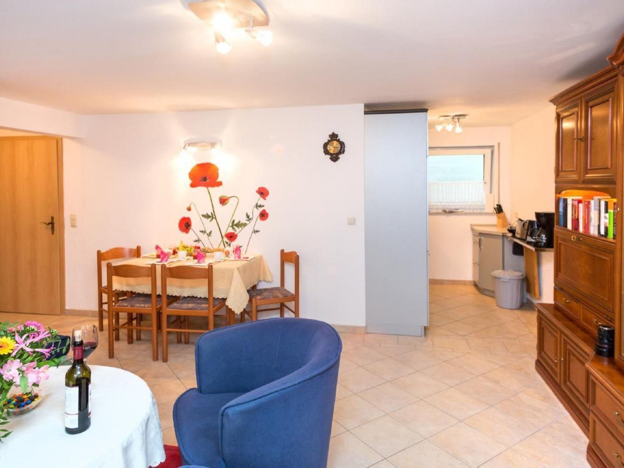 The basement flat is partially below ground level and has open, unobstructed windows in the living room and bedroom, with its own exit to its own terrace. Living/dining room with sofa and sofa bed for two people, satellite TV, hi-fi mini system, high-quality kitchenette with dishwasher, fridge/freezer, oven, ceramic hobs. Bedroom with double bed, shower/WC, terrace with seating and lake view, car parking space directly at the house.