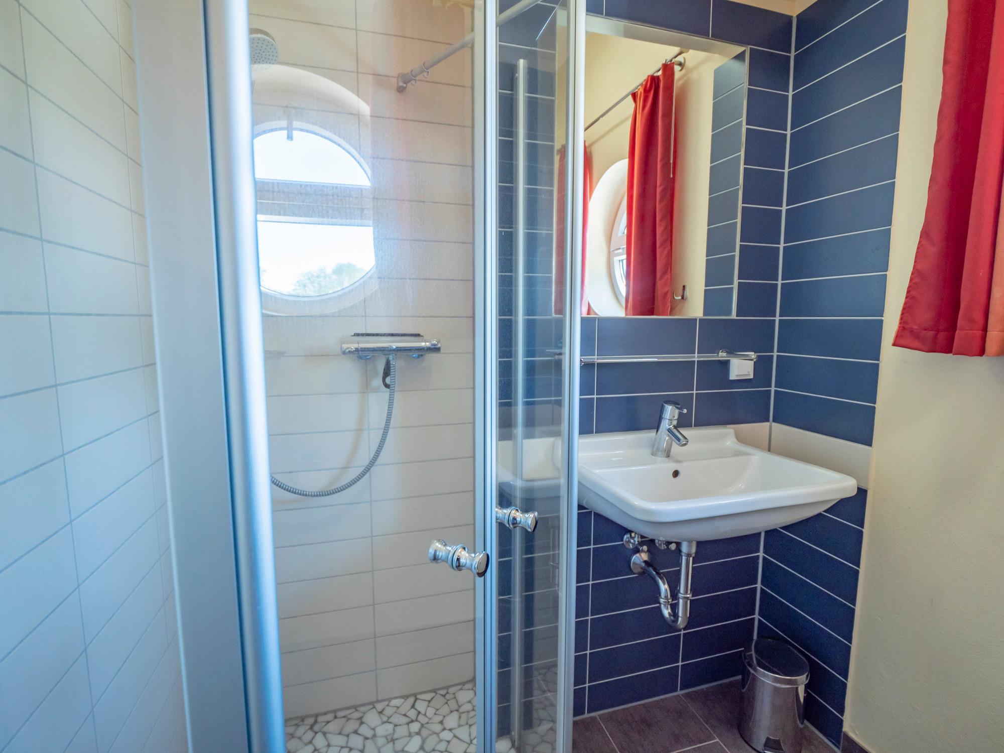 Die Wohnungen Müritz verfügen über zwei Doppelschlafzimmer mit jeweils eigenem Duschbad. Das Sofa im Wohnbereich lässt sich zu einem Doppelbett für zwei weitere Personen umbauen.