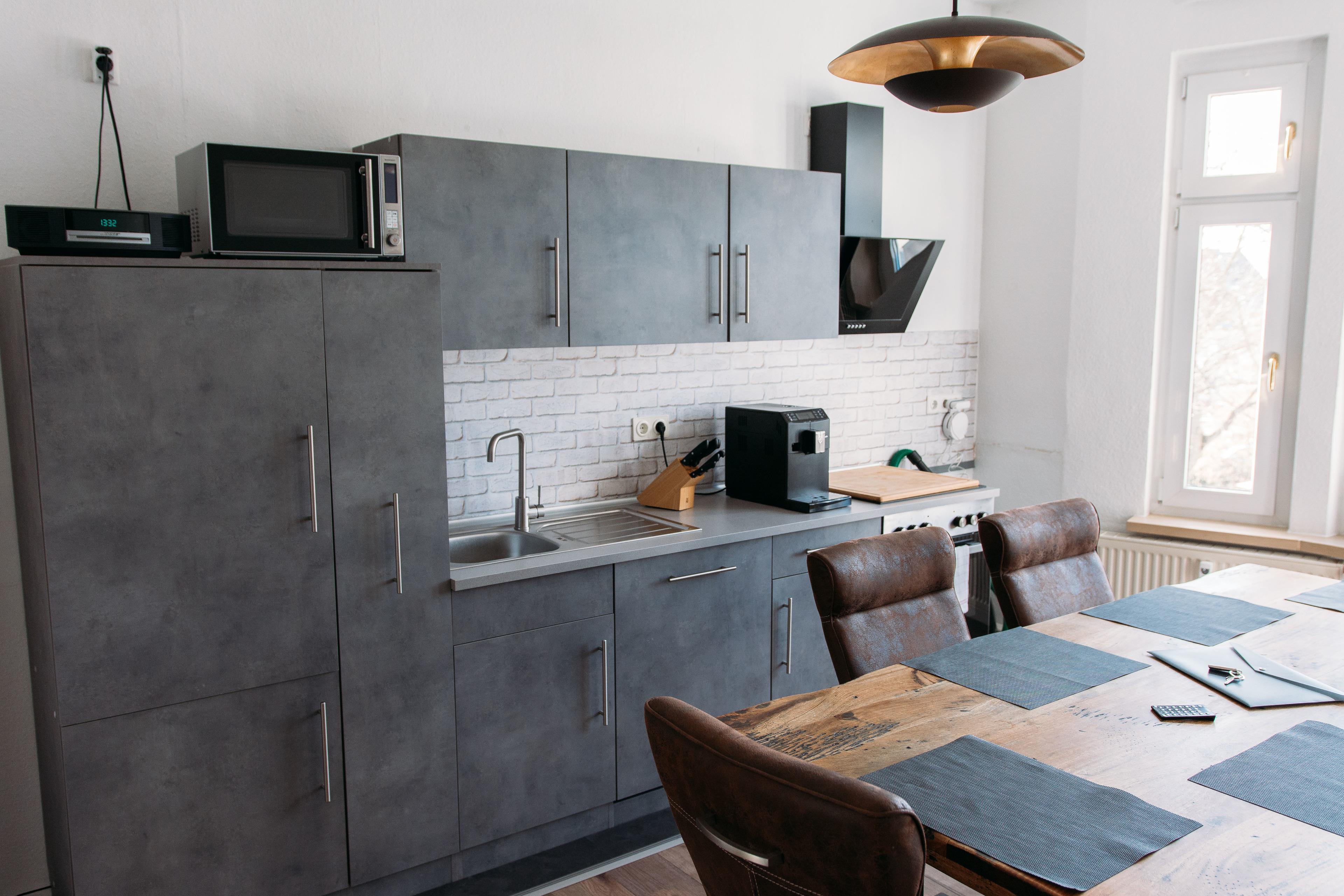 Die Küche ist wie gewohnt, mit allen Annehmlichkeiten des täglichen Bedarfs ausgestattet. Hier fällt beim Betreten sofort der rote Kühlschrank auf. Selbstverständlich fehlt auch hier nicht der Kaffeevollautomat, wie in all unseren Wohnungen.