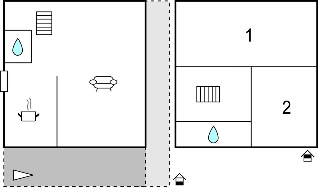 Soveværelse (nr. 1) - 1 Soveplads. (Enkeltseng(e)). 2 Sovepladser. (Dobbeltseng(e)).