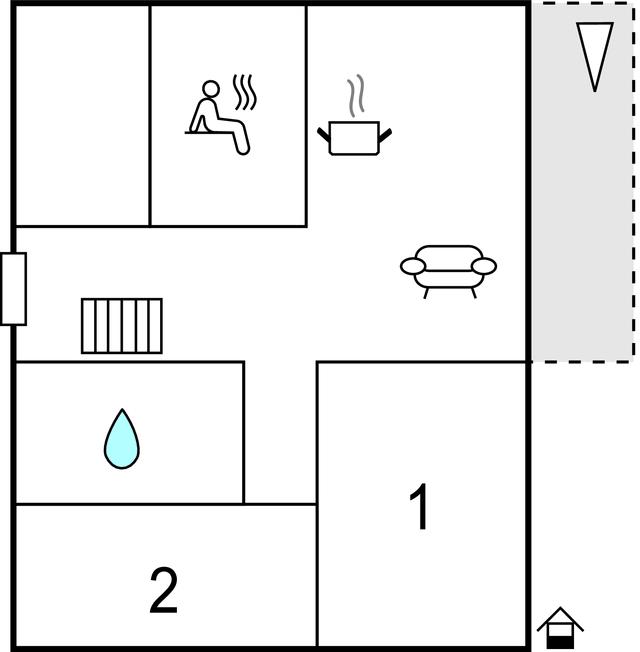 Adgang til lejligheden, også via terrassedøren, er uden trin. Du kan slappe af på terrassen og nyde solen, havemøbler og liggestole, der er tilgængelig. Hele lejligheden er bevidst designet og udstyret til at være uden barrierer såsom sauna eller brusebad. I soveværelset er der en nedklappelig seng.