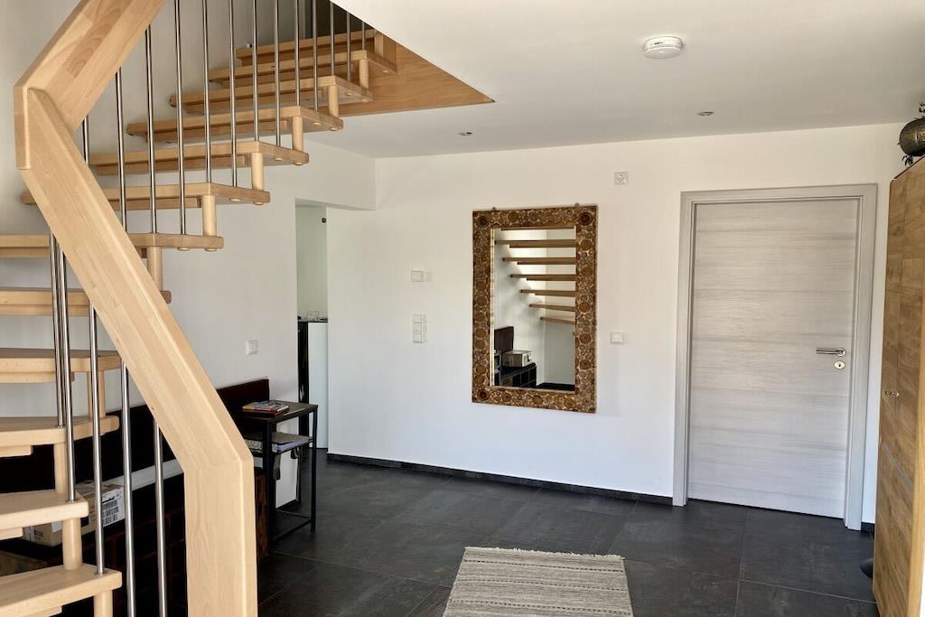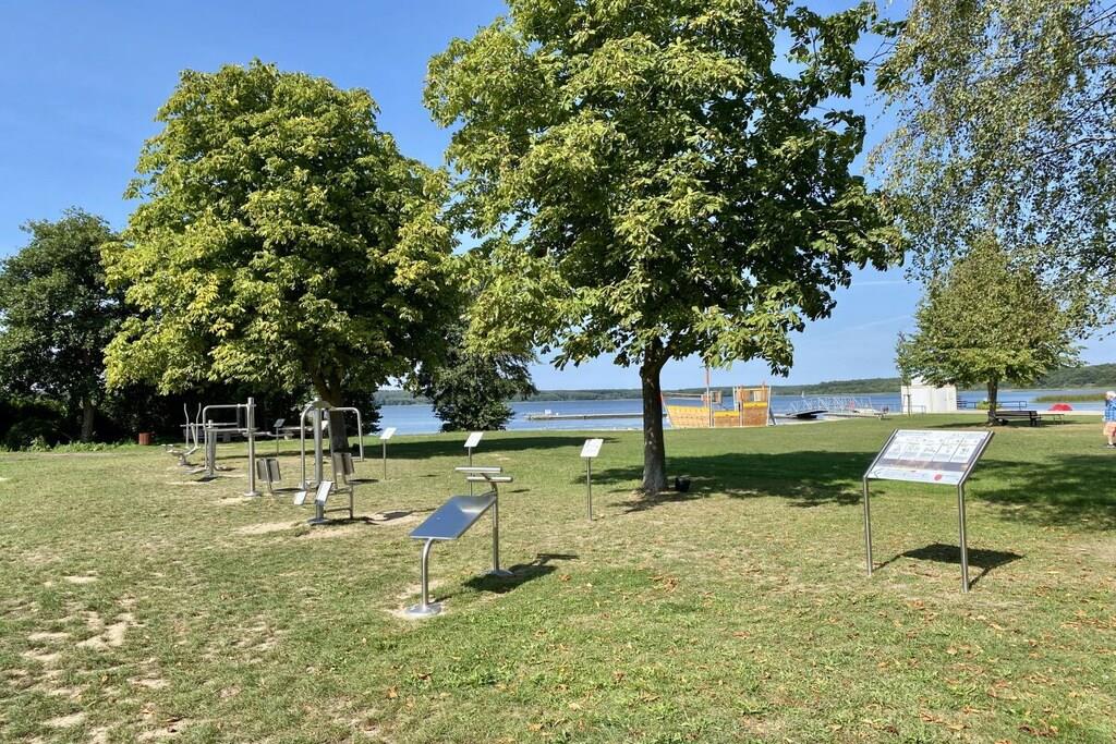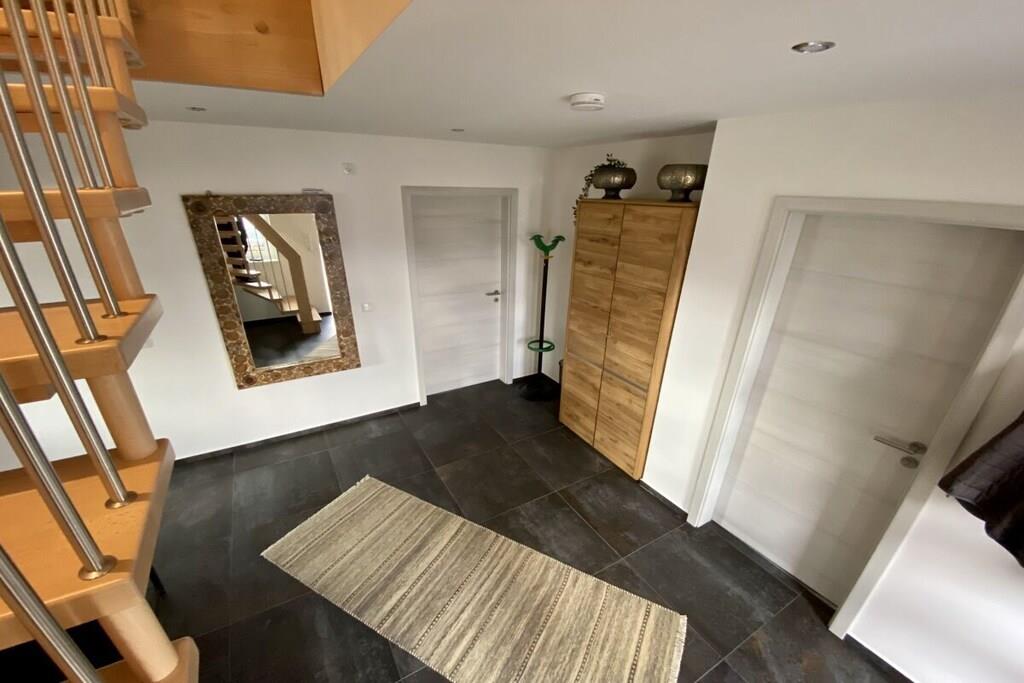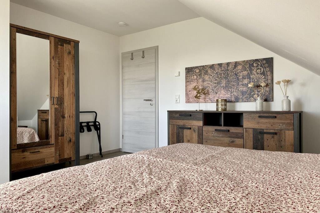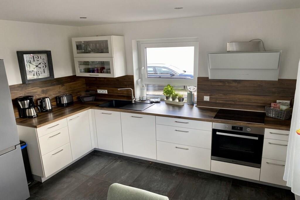 Dette træhus til 6 personer, bygget i 2021, er meget moderne og komfortabelt møbleret. Det ligger i et roligt område med udsigt til Great Wariner Lake. Det ikke-ryger hus har flise- og vinylgulv, gulvvarme og pejs. Den rummelige åbne stue-spisestue, der ikke lader noget tilbage at ønske, er forbundet med den imponerende entré. Det moderne køkken er fuldt udstyret. Du kan holde fantastiske spilleaftener ved det store spisebord. Den komfortable sofa og det store satellit-tv inviterer dig til at slappe af. Stueetagen har også et rummeligt badeværelse med bruseniche og sauna. Efter din saunatur kan du gå direkte ud på den overdækkede terrasse. Ovenpå er der tre meget smagfuldt møblerede soveværelser, hver med en dobbeltseng, samt et udsøgt badeværelse med dobbelt håndvask, bruseniche og badekar. Boxmadrasserne er 1,80 x 2,00 meter og udstyret med madrasser af høj kvalitet. To af soveværelserne har fladskærms-tv. Der er også vaskemaskine, tøjstativ, strygejern og strygebræt. Der er også brætspil og litteratur. Der er gratis Wi-Fi i feriehuset. Værterne garanterer ikke ubegrænset tilgængelighed eller tilstrækkelig hastighed. En højstol og en rejseseng er også gratis tilgængelige. Udenfor kan du nyde morgen- eller aftensolen på to terrasser – med disse ideelle faciliteter (havemøbler, grill) vil du hurtigt føle dig hjemme og falde i en ubekymret feriestemning. Privat parkering og en vægboks er placeret på ejendommen. Det tilstødende aflåselige haveskur tilbyder plads nok til opbevaring af nødvendigt udstyr, såsom cykler. En 4-personers canadisk kano med redningsveste i forskellige størrelser er gratis til rådighed. Brug sker dog på eget ansvar og uden ansvar eller garanti!