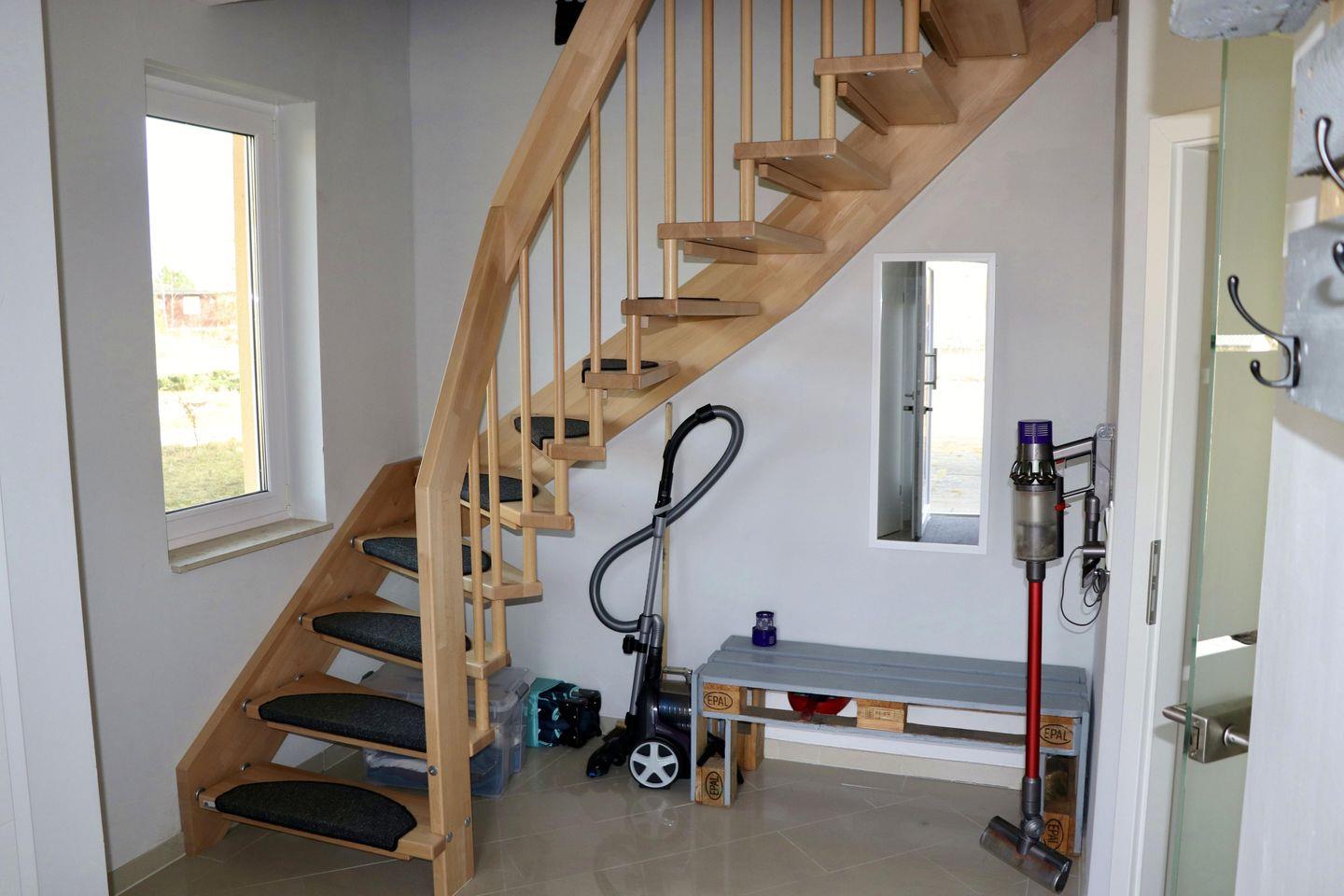 Alle Fenster des Hauses sind mit elektrischen Rollläden ausgestattet. Das ganze Haus wird über Fußbodenheizung beheizt, die Schlafzimmer sind mit Laminat versehen, alle anderen Räume sind gefliest. Im Haus finden Sie auch Waschmaschine, Trockner, Babybett und Kinderhochstuhl.
