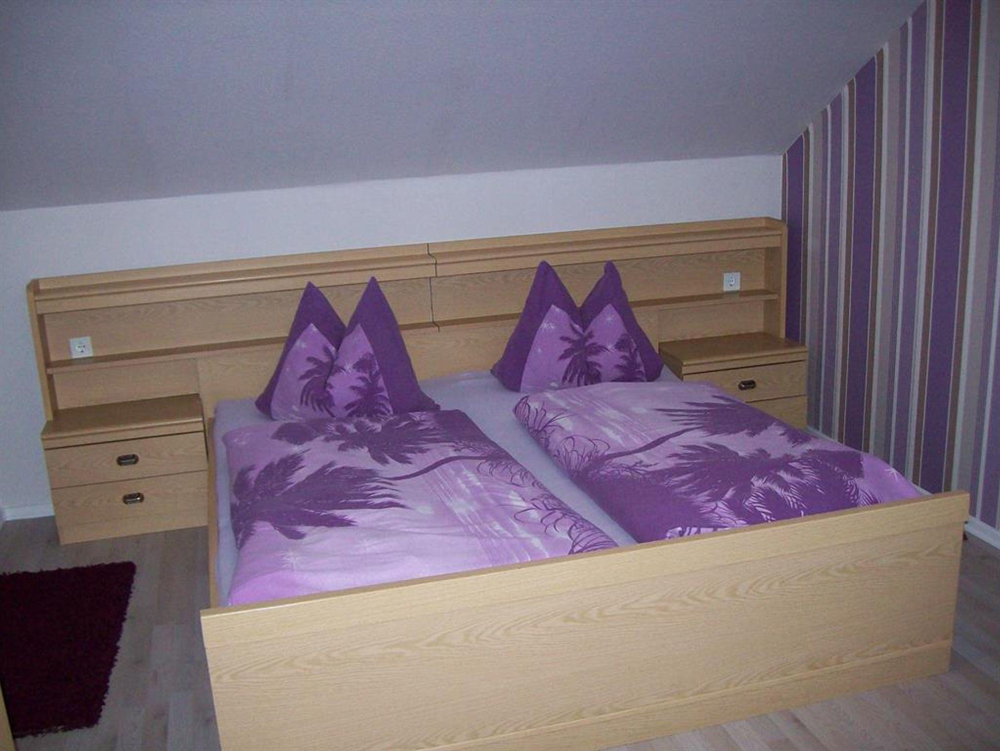 Gemütliche DG-Ferienwohnung (65 m²) mit Wohnküche, zwei getrennte Schlafzimmer mit jeweils Dusche und WC angrenzend (Bad en suite), sowie Balkon/Loggia für 2-4 Personen in sonniger, ruhiger Waldrandlage mit herrlichem Panoramablick, nähe Waldschwimmbad und Rundwanderweg. Kinderermäßigung auf Anfrage. Haustiere auf Anfrage: 5,00 € pro Tag.