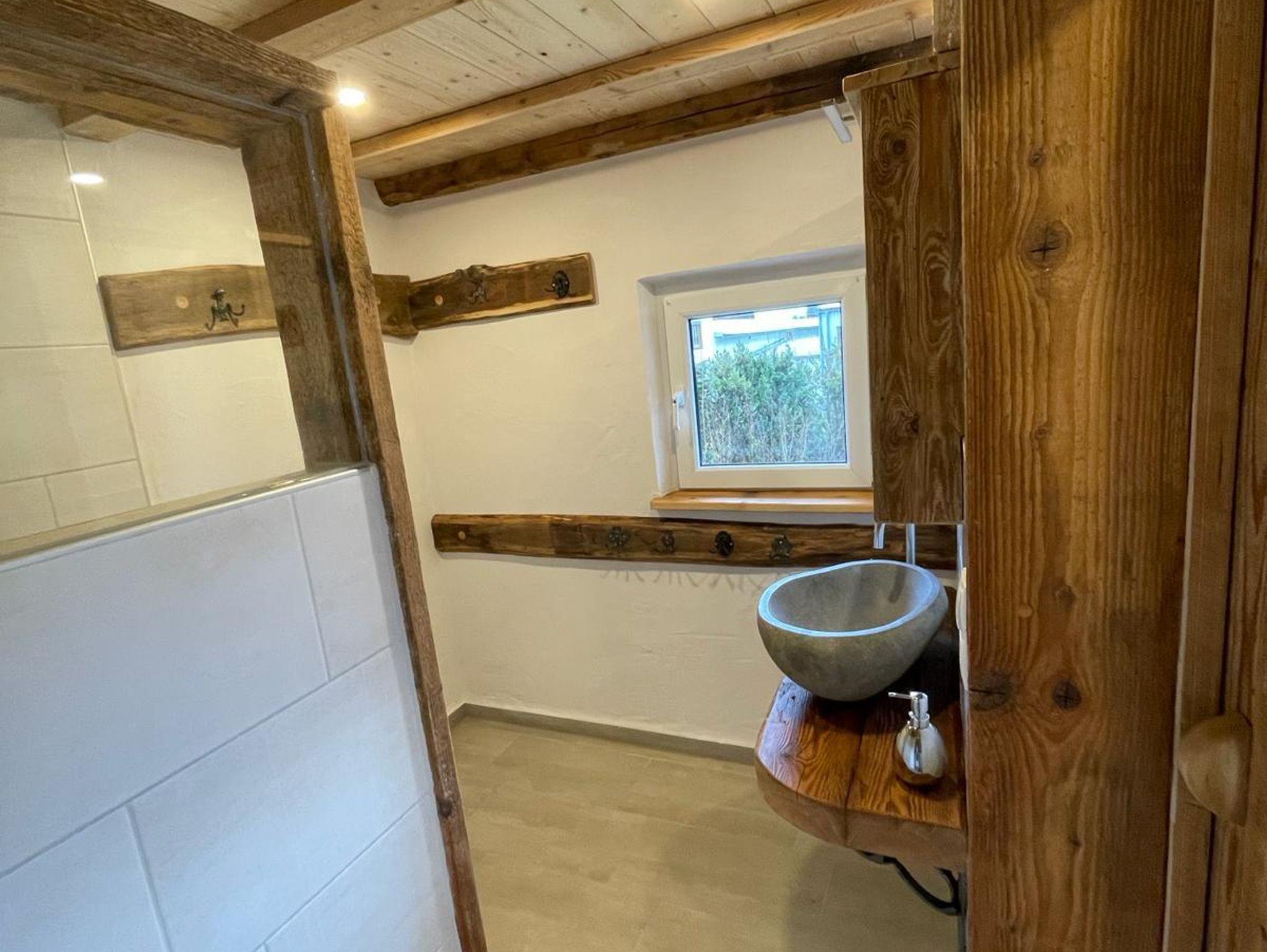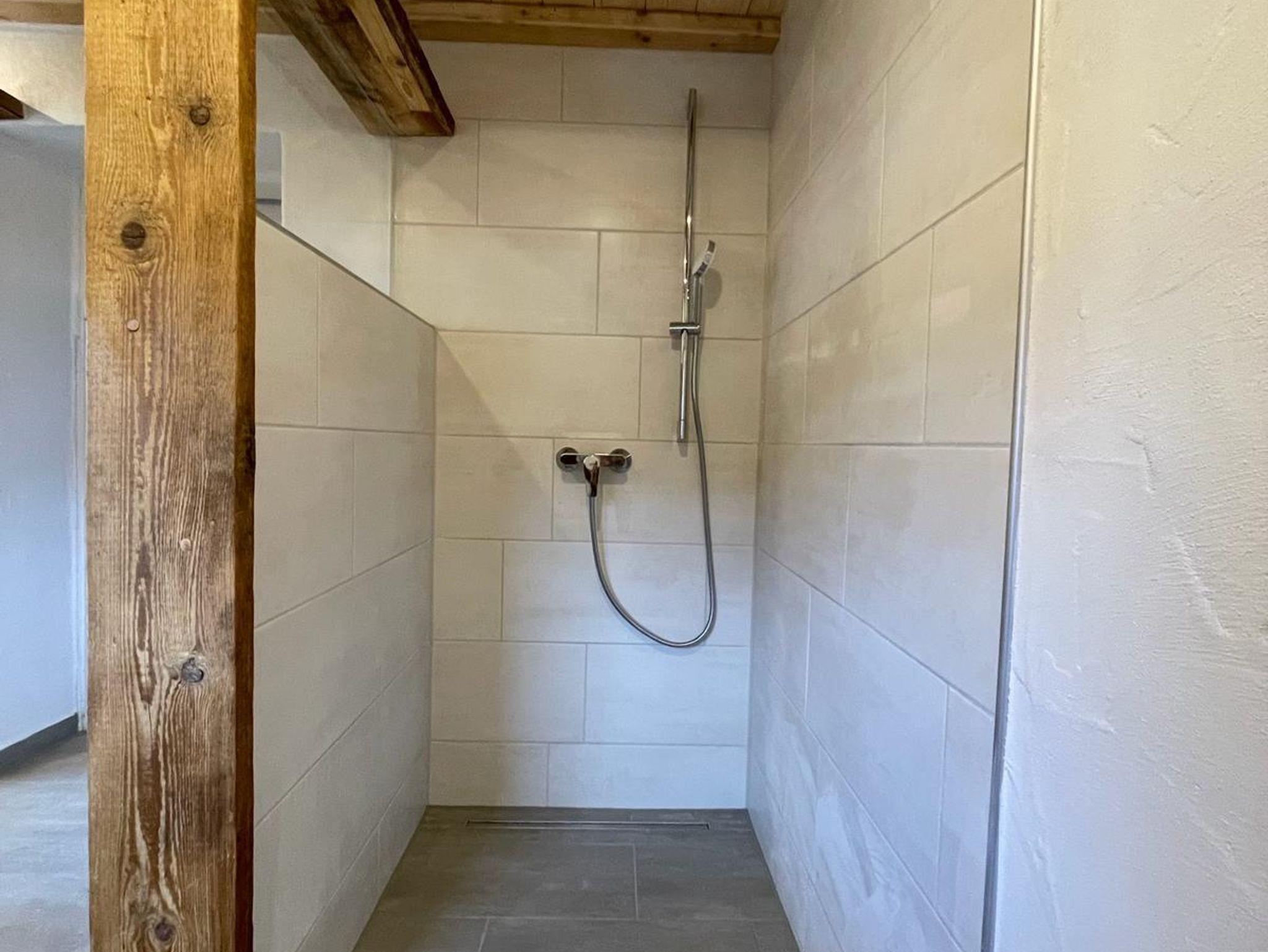 Die neuen rustikal eingerichteten Nassräume mit Waschbeken, barrierefreien Duschen und WC befinden sich im EG und OG. Handtücher bitte selber mitbringen.