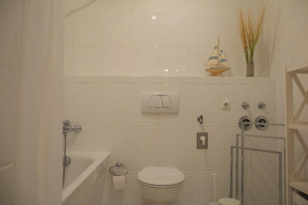 Das moderne Wannenbad ist großzügig geschnitten. Alle Räume sind separat begehbar.