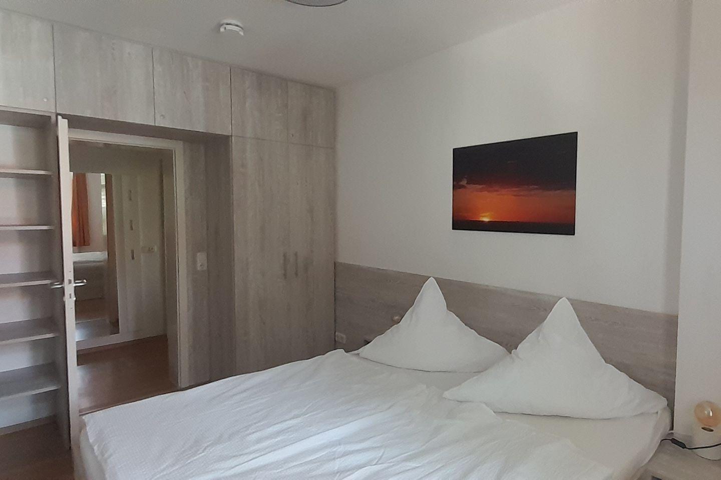 Im Schlafzimmer finden Sie ein bequemes Doppelbett und einen Kleiderschrank.