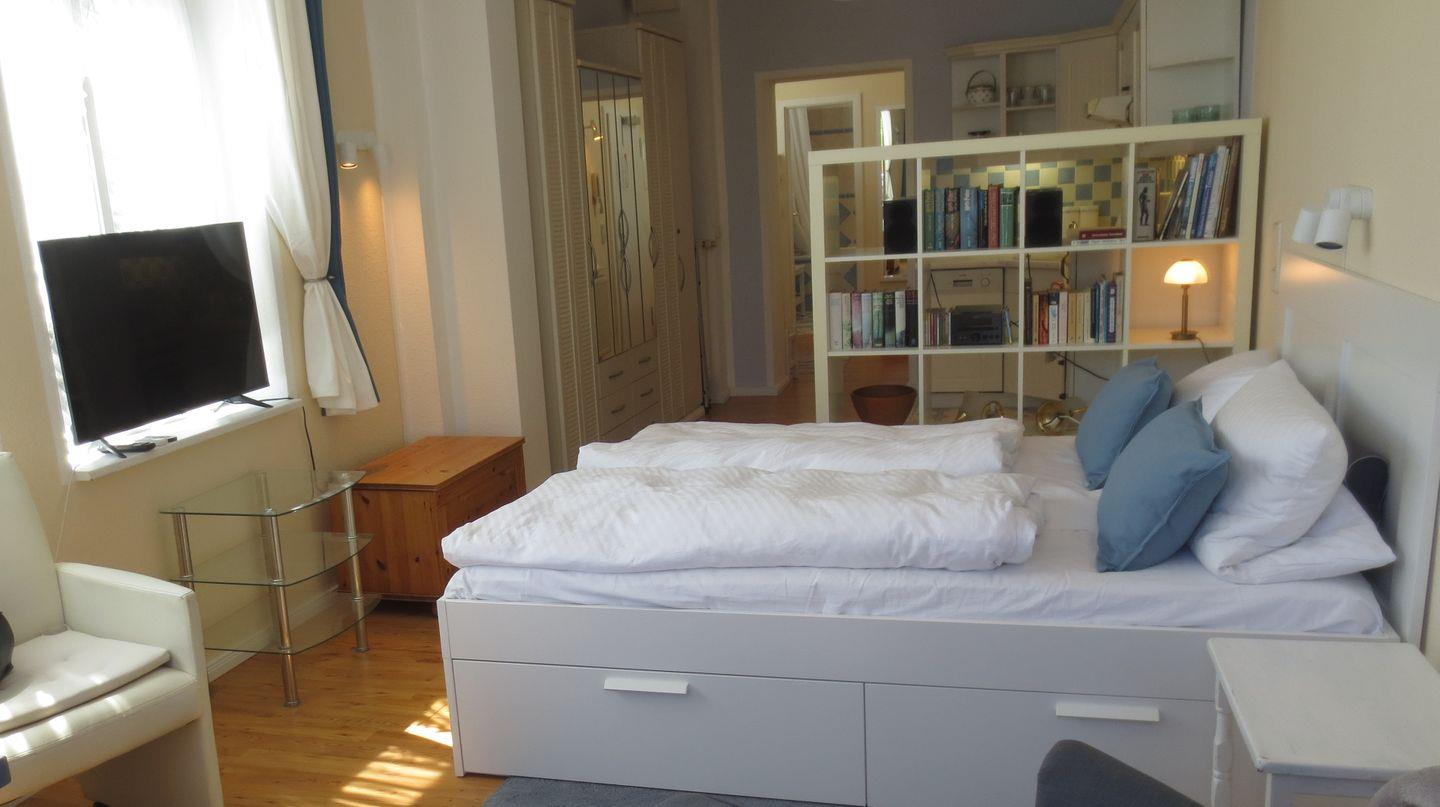 1-Zimmer-Ferienwohnung mit Balkon und Blick auf den Alten Strom