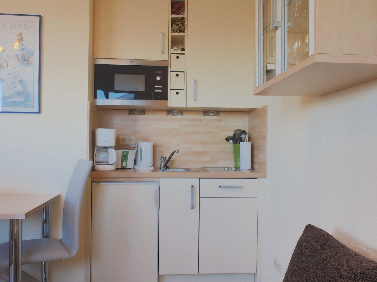 Die Küchenzeile ist praktisch ausgestattet, sodass Sie sich jederzeit kleine Mahlzeiten zubereiten können. Im modernen Bad mit Dusche, Waschtisch und WC starten Sie frisch in den Tag.Von der Wohnung aus genießen Sie einen atemberaubenden Panoramablick. Zu dieser Wohnung können Sie optional einen Parkplatz im Parkhaus Molenfeuer hinzubuchen.